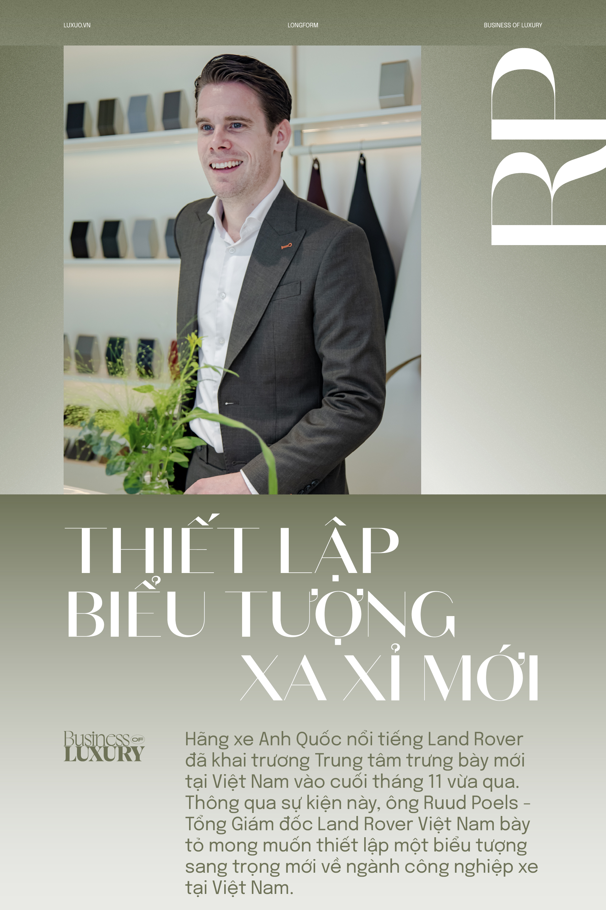 Theo đó, trung tâm trưng bày mới đầu tiên trên thế giới được thiết kế theo tầm nhìn “Ngôi nhà thương hiệu” được ra mắt vào ngày 23/11 tại Hà Nội. Đây là động thái mới trong chiến lược mở rộng sang khu vực Đông Nam Á và Việt Nam được đánh giá là một trong những quốc gia có thị trường hàng xa xỉ phát triển nhanh nhất. Tại thời điểm này, Land Rover Việt Nam đang trong quá trình chuẩn bị cơ sở vật chất để sẵn sàng phân phối xe điện vào năm 2025. Việc đưa xe điện về Việt Nam cũng nằm trong kế hoạch toàn cầu của thương hiệu Anh Quốc. Để hiểu hơn về tầm nhìn cũng như những cam kết phát triển của thương hiệu Land Rover, đội ngũ biên tập LUXUO Việt Nam đã có buổi phỏng vấn trực tiếp với ông Ruud Poels, Tổng Giám đốc JLR Việt Nam dưới đây.