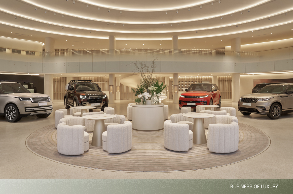 Land Rover đã truyền tải khái niệm về “sự sang trọng” trong các ngôn ngữ thiết kế và nội thất showroom như thế nào?