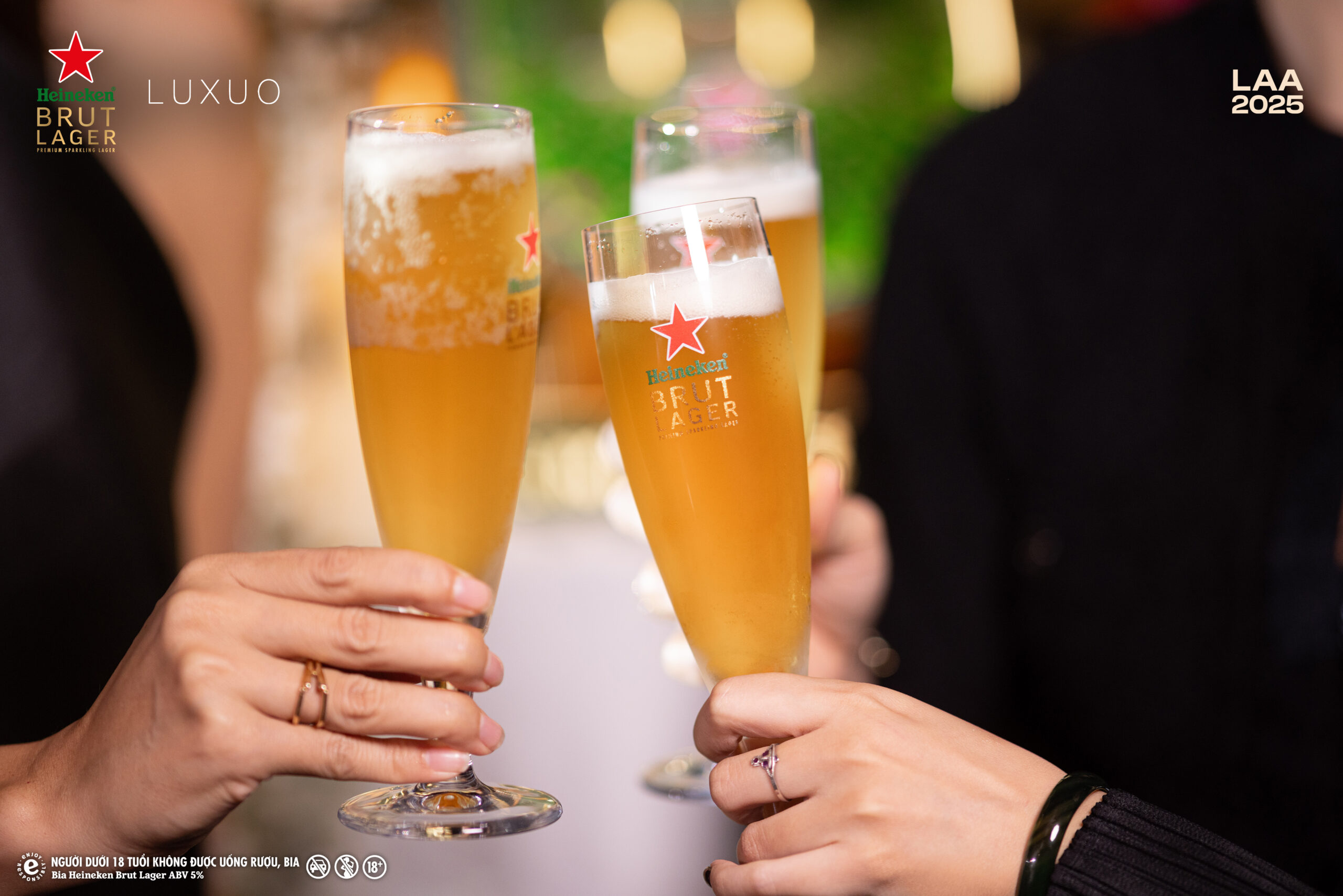 Đêm trao giải LUXUO ASIA AWARDS 2025 được mở đầu trong khoảnh khắc mọi người cùng nâng ly Heineken Brut Lager, đánh dấu sự khởi đầu của một đêm đáng nhớ. Với dòng bia vàng óng, bọt sủi lăn tăn, điểm nhẹ nốt hương hoa và trái cây tinh tế, những cuộc trò chuyện được khơi mở, cảm xúc dần lan tỏa, và những khoảnh khắc đáng nhớ được tạo nên một cách tự nhiên, đúng chất của một đêm vinh danh trọn vẹn và xứng tầm.