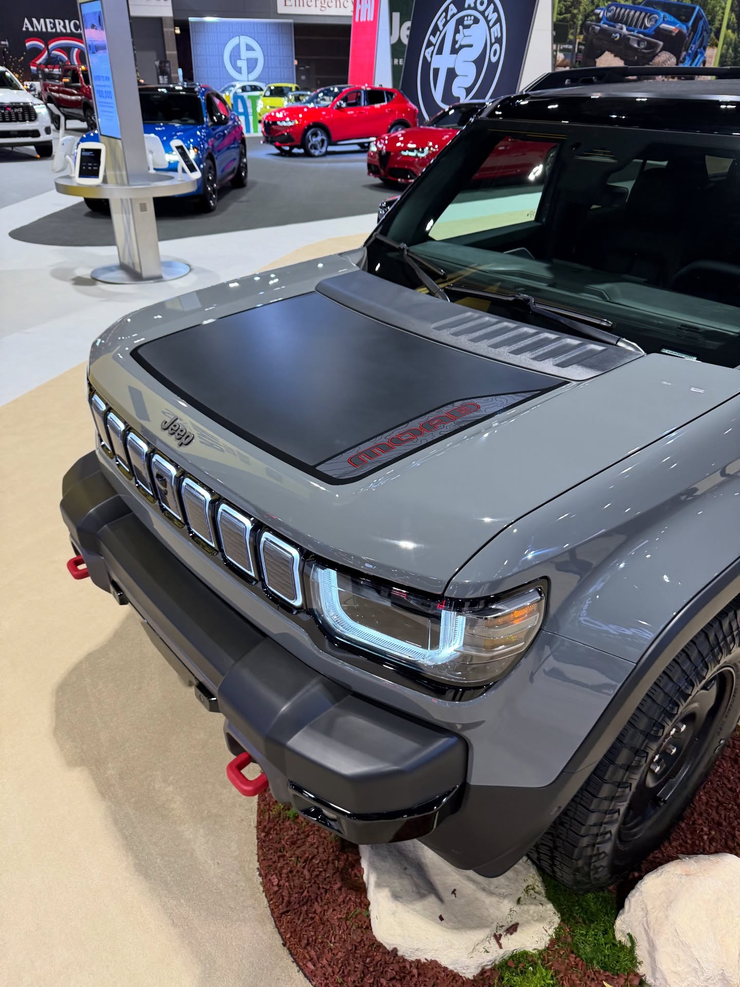 Tại khu trưng bày của Jeep, mẫu Recon chạy điện hoàn toàn cũng được giới thiệu như một chiếc xe thể thao đa dụng dành cho địa hình nhưng vẫn phù hợp với nhu cầu di chuyển hằng ngày.