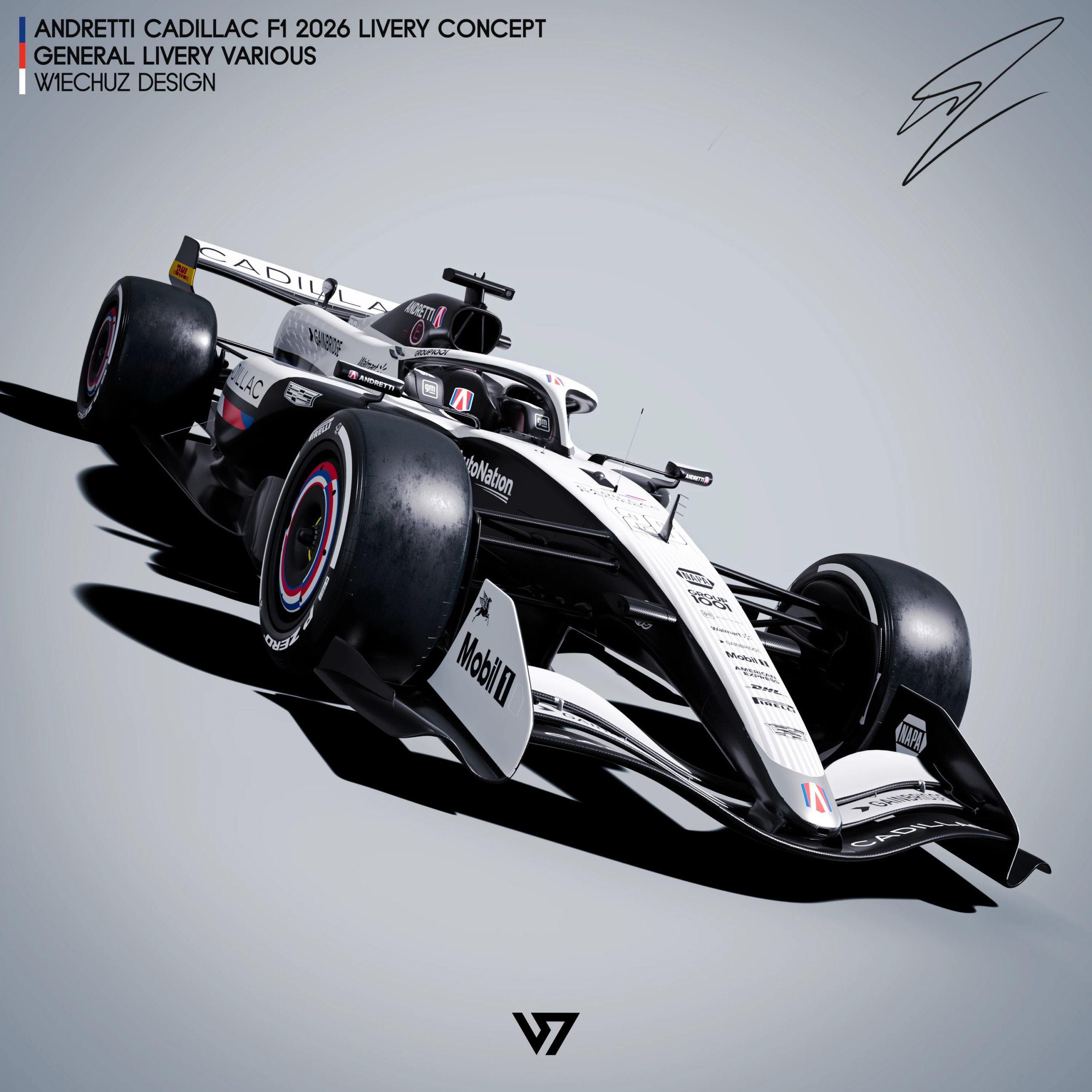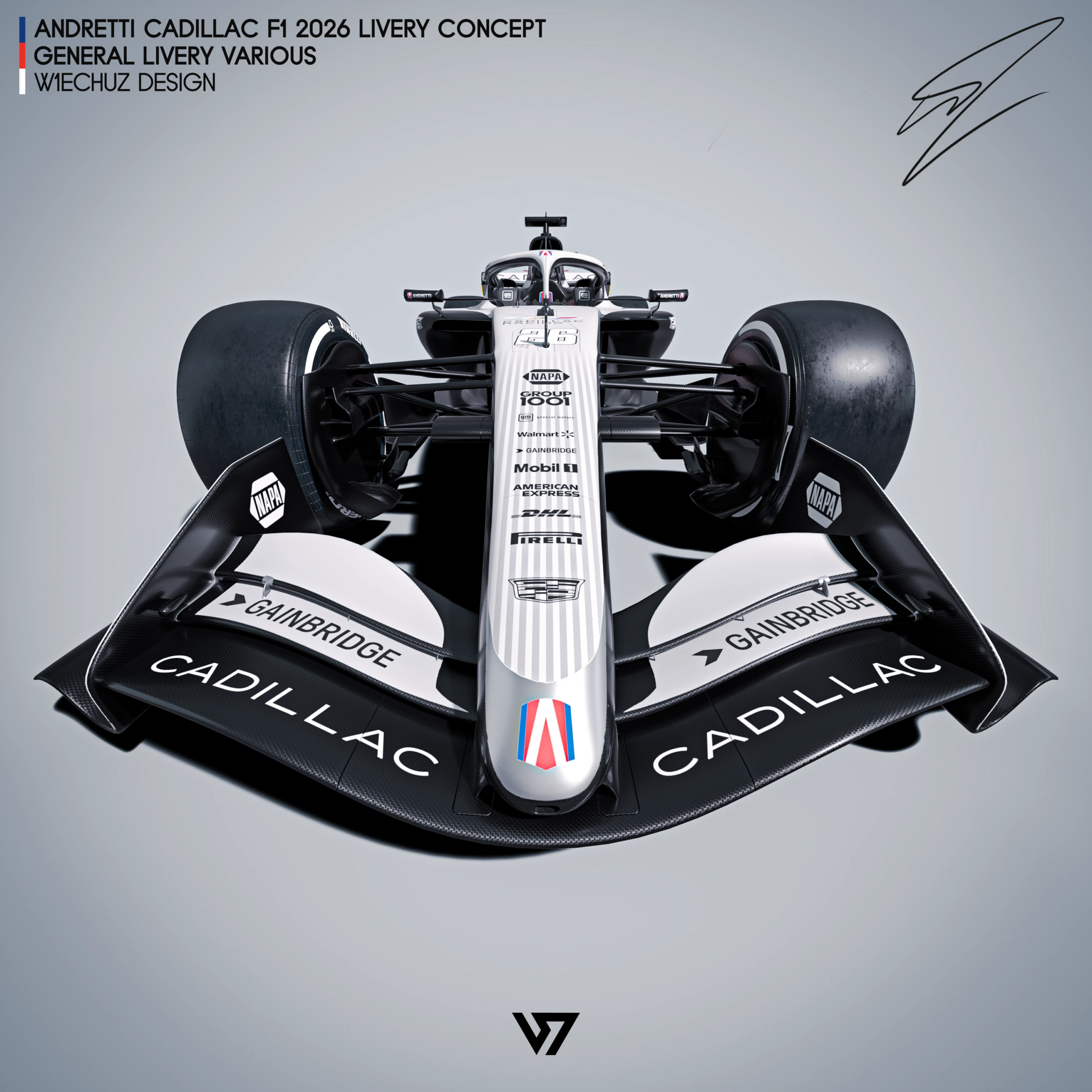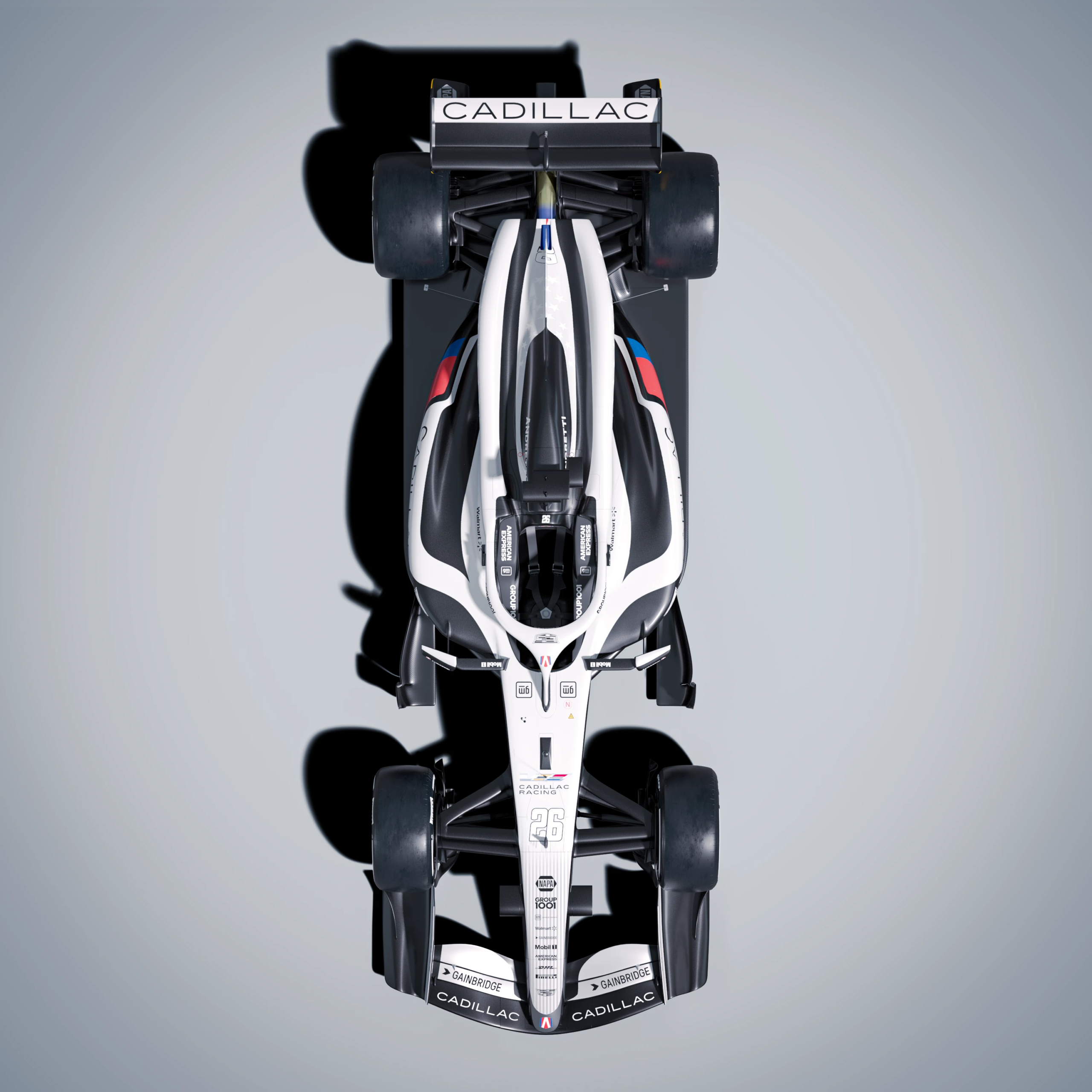 Giải đua Công Thức 1 năm 2026 trở nên thú vị hơn nhờ sự góp mặt của Cadillac. Thiết kế xe đua gây ấn tượng bằng hai tông màu đen trắng chia dọc thân xe dựa trên những hoa văn làm nên tên tuổi của hãng. Phần khung bảo vệ quanh chỗ ngồi của tay đua được phủ lớp sơn kim loại lấp lánh giúp vẻ ngoài thêm phần lôi cuốn.