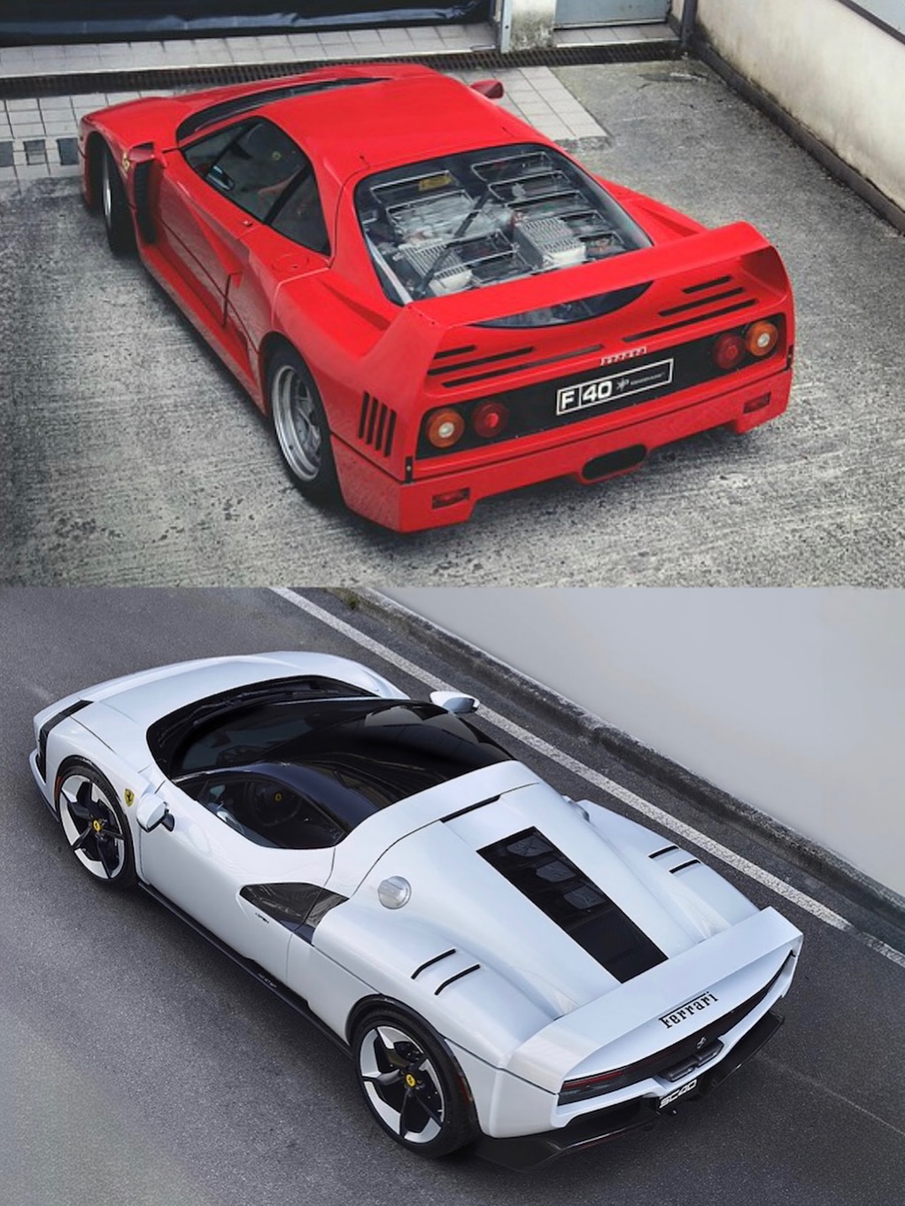 Trên: nội thất của Ferrari F40Dưới: nội thất của Ferrari SC40