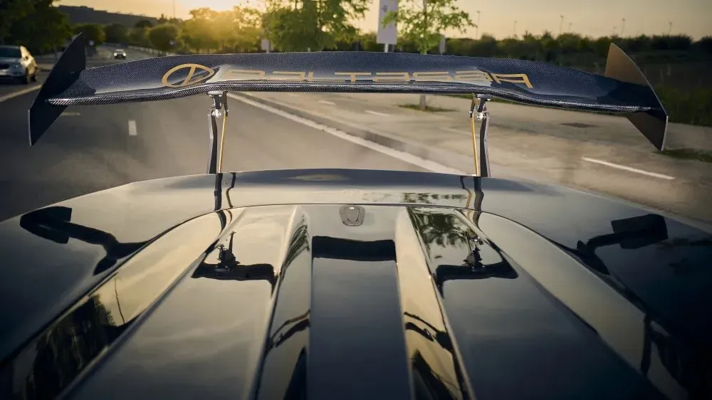 Để đảm bảo khả năng vận hành tối ưu trong môi trường khắc nghiệt của đường đua, Baltasar Revolt R được nâng cấp toàn diện về khí động học. Chiếc xe sở hữu một cánh gió sau cỡ lớn bằng carbon với thiết kế khí động học chủ động (active aerodynamic), cản trước và hốc hút gió được điều chỉnh lại để tối ưu dòng khí. Phần chắn bùn trước được thiết kế lại gọn gàng, đi cùng bộ khuếch tán sau lớn giúp tăng lực ép và độ ổn định khi vào cua tốc độ cao. Bộ mâm sơn vàng thể thao đi cùng lốp trơn cũng góp phần tôn lên vẻ ngoài quyết liệt, không khoan nhượng.
