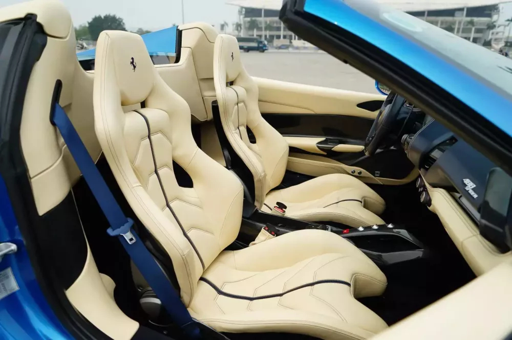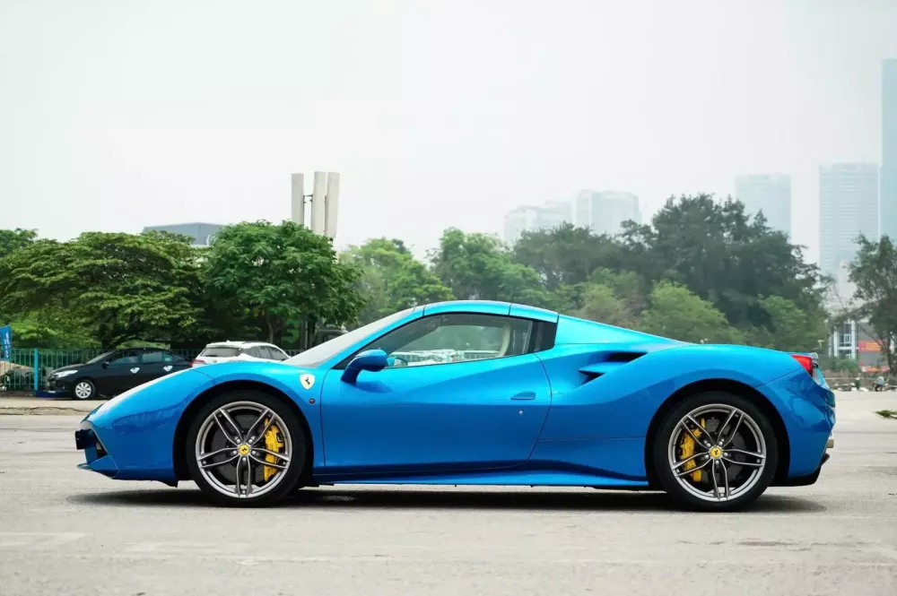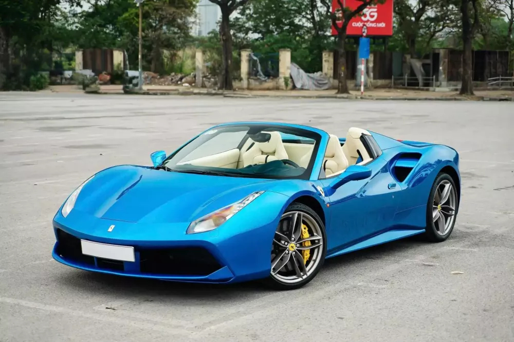 Ferrari 488 Spider là 1 chiếc siêu xe mui trần tuyệt đẹp chỉ có 2 chỗ ngồi, tại Việt Nam, chỉ có 3 xe được nhập về nước, nhưng chỉ 1 xe mới đây được giao dịch, đó là 1 chiếc Ferrari 488 Spider mang màu xanh dương cùng nội thất màu kem.