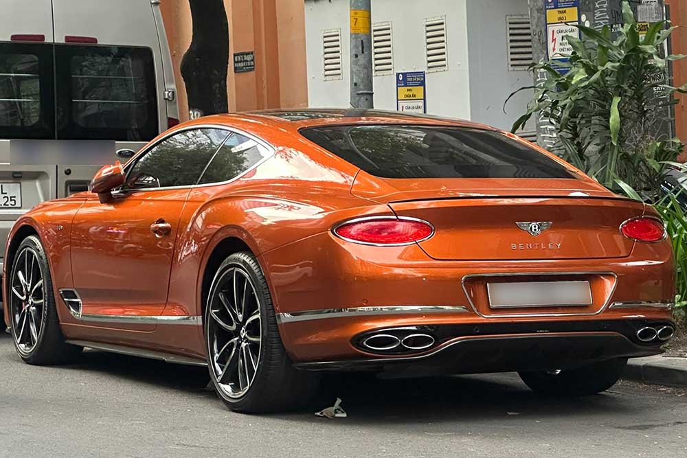 Continental GT thế hệ thứ ba được Bentley sản xuất trong giai đoạn 2018-2024 trước khi bước sang thế hệ mới. Trên thị trường, dòng xe này thường xuất hiện với các màu trắng, đen, xám hoặc một số màu hiếm như xanh và đỏ. Việc chủ nhân lựa chọn màu cam cho chiếc xe của mình giúp mẫu coupe này trở nên nổi bật hơn hẳn giữa phố đông.