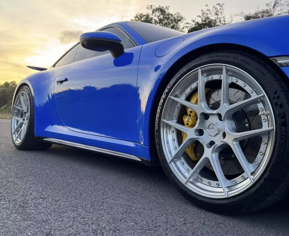 Chưa hết, hàng loạt đồ chơi cho dàn chân và hệ thống phuộc của xe cũng giúp chiếc Porsche 911 992.1 của 9X Hà Nội trở nên phong cách, xe lên bộ mâm 5 chấu kép sơn bạc của hãng BCforged với kích thước cho bánh trước và bánh sau lần lượt là 20 inch và 21 inch.