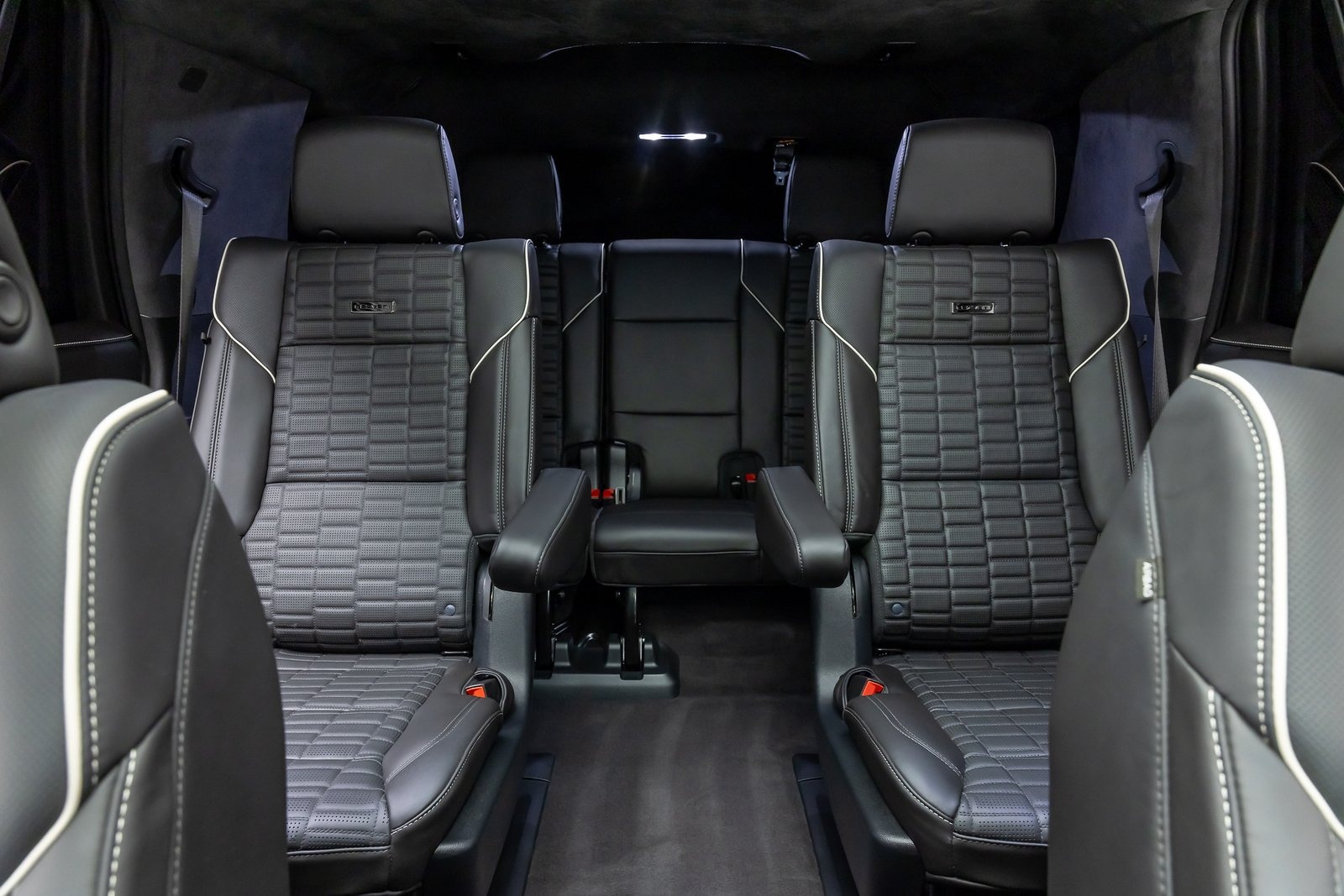 Bên trong, xe có 7 chỗ ngồi, có thể tùy chọn 10 kiểu ghế khác nhau và rất nhiều tùy chọn màu da. Các tính năng giải trí giữ nguyên từ Escalade, với màn hình giải trí có khả năng kết nối Apple CarPlay/Android Auto, màn hình HUD, đồng hồ điện tử,…