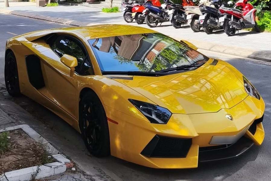 Điểm đáng chú ý, đây chính là chiếc Aventador LP700-4 đầu tiên được nhập khẩu về Việt Nam vào năm 2012. Hiện tại, chỉ có 2 xe Aventador LP700-4 mang màu vàng, trong đó mẫu xuất hiện ở Đà Nẵng giữ nguyên màu sơn gốc, khác với chiếc còn lại đã được đổi sang màu xám.