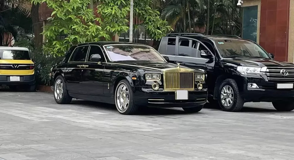 Và nổi bật và lạ nhất trong dàn xe này sẽ đến từ chiếc xe siêu sang Rolls-Royce Phantom mạ vàng. Xe này rất ấn tượng khi nhiều chi tiết được mạ vàng 24k, như lưới tản nhiệt lò sưởi, logo Spirit of Ecstasy, vỏ gương, viền đèn pha/hậu, sương mù và mâm. Chưa hết, các thanh nẹp mạ chrome nguyên bản theo chiếc Rolls-Royce Phantom cũng được chủ nhân mạ vàng 24k.