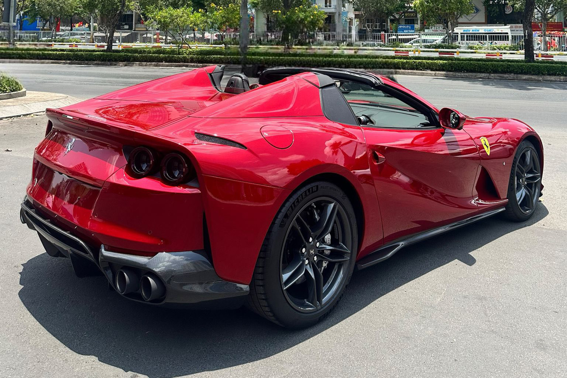 Tính đến thời điểm hiện tại, thị trường Việt Nam đã có hai chiếc Ferrari 812 GTS. Chiếc đầu tiên thuộc sở hữu của một đại gia chưa được tiết lộ danh tính, có ngoại thất sơn màu Rosso 70th Anniversary độc đáo. Chiếc trong bài viết này là chiếc thứ hai cập bến nước ta, mang màu sơn đỏ mận Rosso Fuoco.