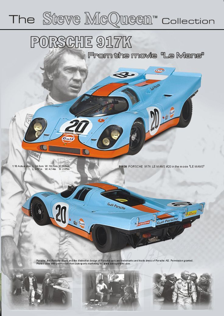 Hình ảnh chiếc 917K trong bộ phim Le Mans của nam minh tinh điện ảnh Steve McQueen — khoác lên mình sắc xanh da trời và cam biểu tượng của Gulf — đã góp phần đưa mẫu xe này thành một tượng đài văn hóa đại chúng. Với tất cả sức ảnh hưởng không chỉ trên đường đua, ngành công nghiệp xe hơi và văn hóa đại chúng, không ngạc nhiên khi một trong những chiếc Porsche 917 từng xuất hiện trên phim trường đã bán đấu giá với mức giá ấn tượng 25 triệu USD (và thậm chí mức giá hiện nay có thể cao hơn).