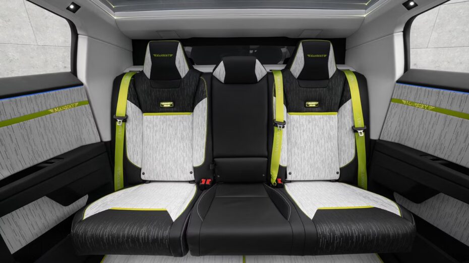 Bề mặt bóng bẩy hoặc các chi tiết carbon kết hợp với ghế bọc da tương phản, cùng các bề mặt taplo/tapi cửa thiết kế riêng, điều này mang đến cảm giác sang trọng cho khách hàng. Đồng thời, logo của Mansory được thêu tỉ mỉ trên tựa lưng ghế, dây an toàn và thảm sàn… tạo điểm nhấn tinh tế cho không gian nội thất.
