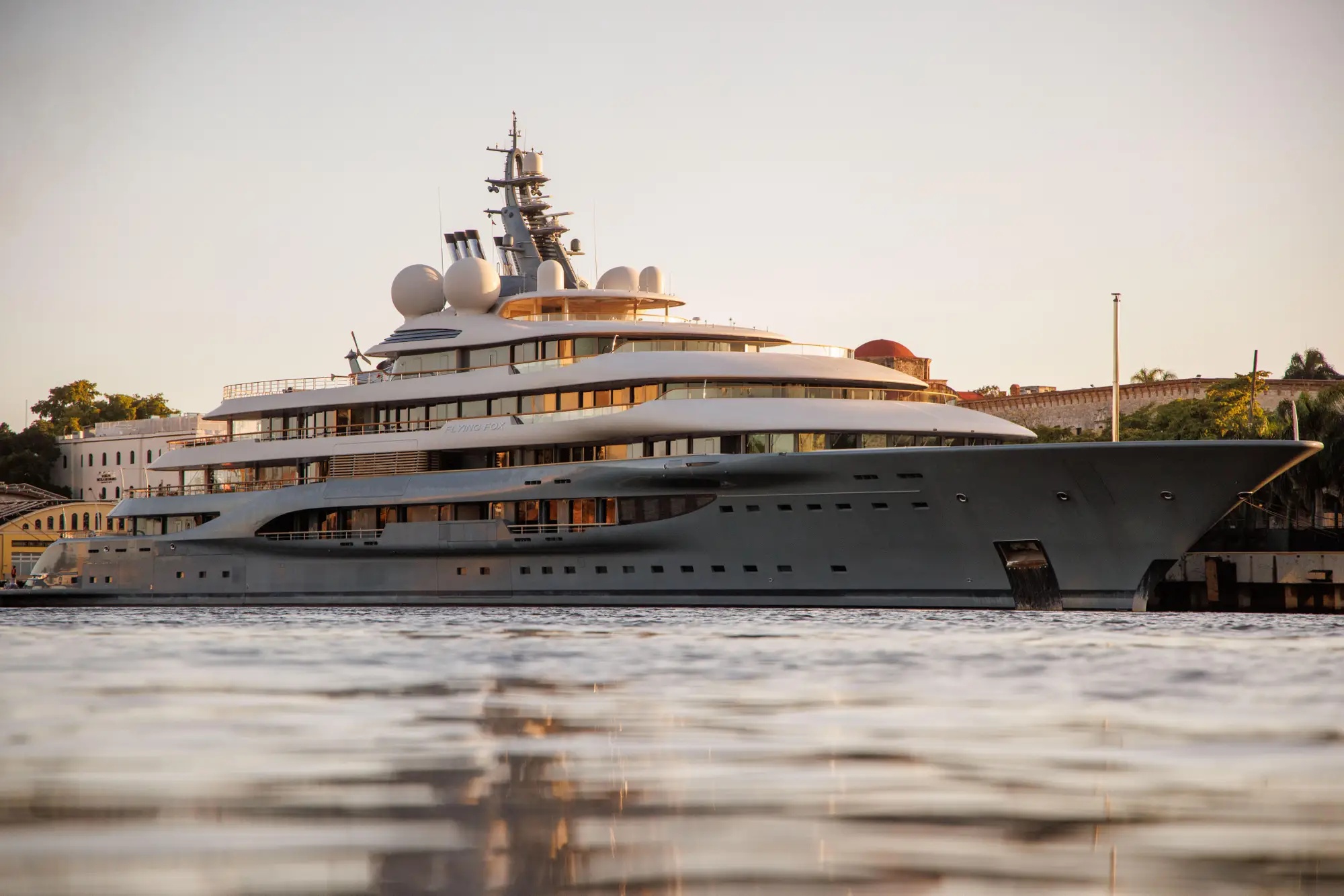 Với độ dài 136m, Flying Fox là một trong những siêu du thuyền lớn nhất và hiện đại nhất thế giới, được thiết kế bởi Espen Øino – bậc thầy trong làng thiết kế du thuyền cỡ lớn. Hoàn thiện vào năm 2019 với chi phí ước tính khoảng 400-450 triệu USD, Flying Fox sở hữu nội thất đẳng cấp do nhà thiết kế Mark Berryman thực hiện.