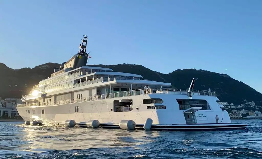 Rising Sun (dài 138 m) là một trong những siêu du thuyền mang tính biểu tượng nhất thế giới, được thiết kế bởi huyền thoại Jon Bannenberg và chế tạo bởi xưởng Lürssen (Đức). Mẫu du thuyền được hoàn thiện năm 2004 và bàn giao cho Larry Ellison – nhà sáng lập tập đoàn Oracle. Vào năm 2010, tỷ phú truyền thông Mỹ David Geffen mua lại toàn bộ du thuyền và trở thành chủ sở hữu duy nhất. Đây cũng là nơi thường xuyên đón tiếp các nhân vật nổi tiếng toàn cầu như Oprah Winfrey, Leonardo DiCaprio và cựu Tổng thống Mỹ Barack Obama trong những chuyến du ngoạn riêng tư.