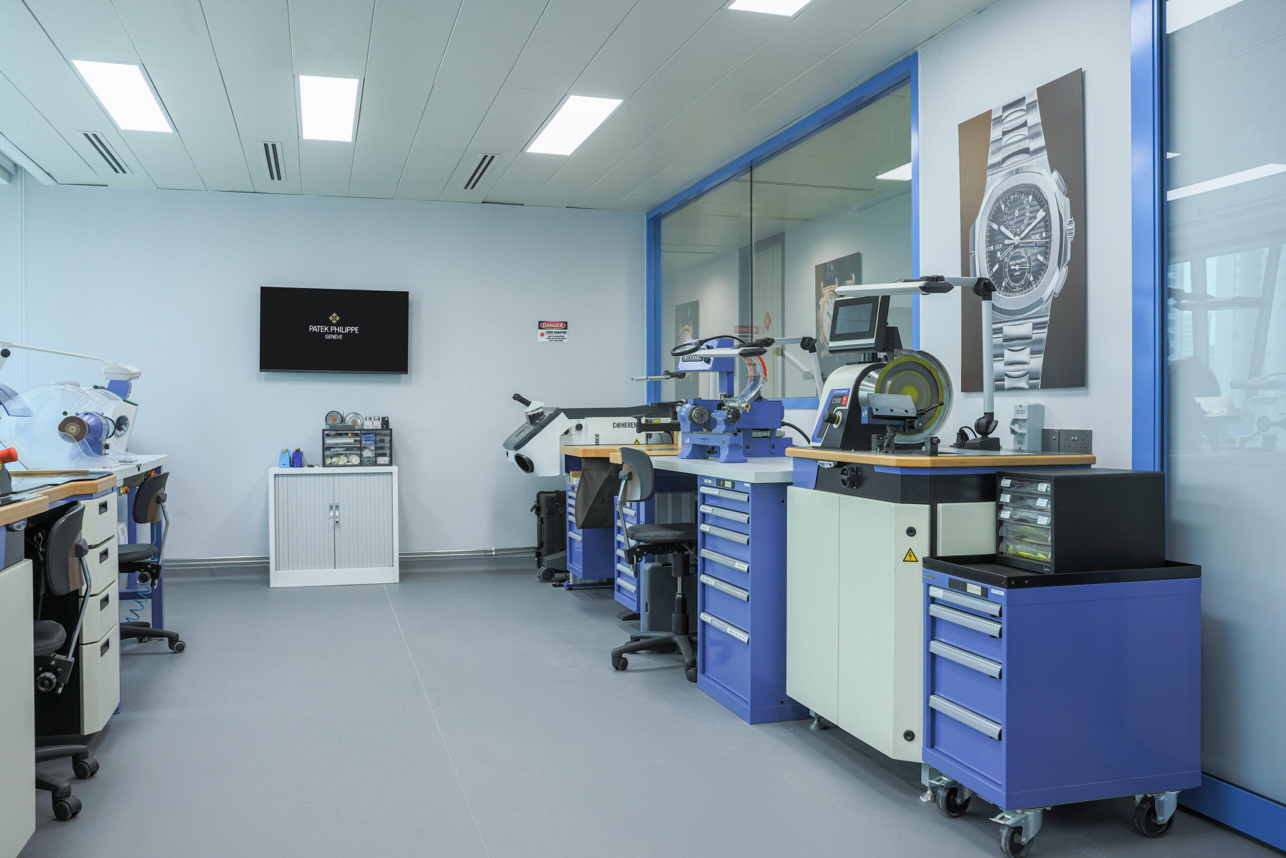 Với tổng diện tích 828 mét vuông, Trung tâm Dịch vụ sau khi được nâng cấp đi kèm hệ thống cơ sở vật chất cải tiến, nhằm nâng cao trải nghiệm dịch vụ cũng như môi trường làm việc của các nghệ nhân. Bên cạnh khu xưởng kỹ thuật, không gian mở rộng còn bao gồm các khu vực dành riêng cho khách hàng, với hai phòng lounge sang trọng phục vụ việc trải nghiệm đồng hồ, thuyết trình và các buổi trình diễn tương tác do chính các nghệ nhân Patek Philippe thực hiện, cùng một phòng họp mới dành cho các buổi tư vấn riêng tư.