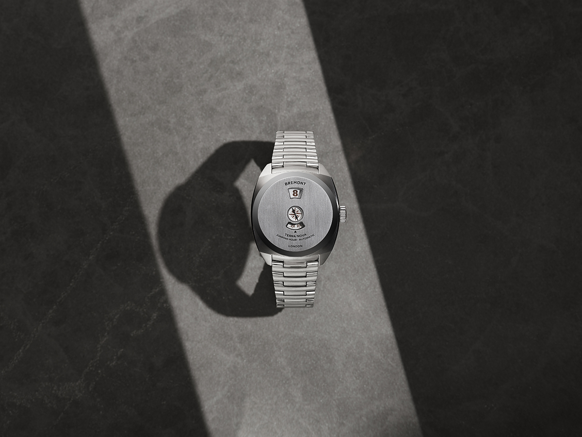 Nếu phiên bản giới hạn bằng đồng trước đó gợi lên hoài niệm về những chiến hào, thì phiên bản thép 904L mới này là một tuyên ngôn về sự thanh lịch gai góc. Chất liệu thép 904L vốn nổi tiếng với khả năng chống ăn mòn vượt trội và độ sáng bóng đặc biệt sau khi hoàn thiện, được Bremont xử lý xen kẽ giữa chải xước satin và đánh bóng gương, tạo ra một cuộc chơi ánh sáng đầy tinh tế trên bộ vỏ 38mm. Điều khiến Terra Nova Jumping Hour trở nên khác biệt không nằm ở những gì sáng tạo này phô trương, mà ở những gì nó ẩn giấu.