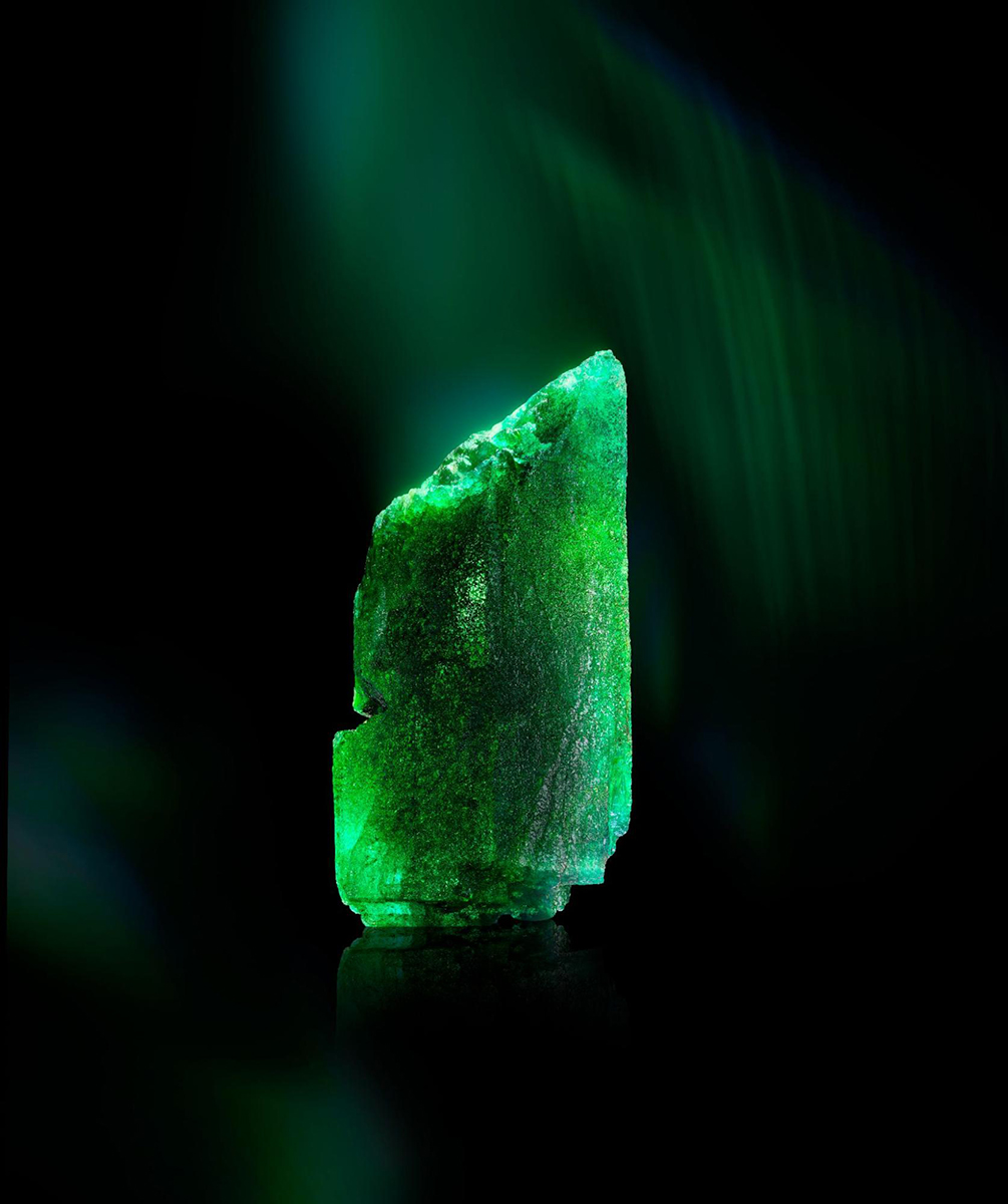 Viên ngọc lục bảo thô 6.225 ct được khai thác tại Zambia và đặt tên là Insofu (nghĩa là “voi” trong tiếng Bemba). Sau gần một năm nghiên cứu và chế tác tỉ mỉ bởi các thợ cắt đá hàng đầu thế giới, viên đá cho ra 850 ct ngọc lục bảo tuyệt đẹp, trở thành tâm điểm của 15 mẫu trang sức cao cấp từ Chopard như vòng cổ, bông tai, nhẫn, vòng tay và đồng hồ. Lần thứ hai trong lịch sử, Chopard thực hiện nước đi táo bạo khi sáng tạo một bộ sưu tập đỉnh sức không phải từ những viên đá quý đã gọt giũa bóng bẩy, mà từ một viên đá thô nhiều tiềm năng nhưng cũng đầy thách thức. Đây là một hướng đi hiếm thấy trong ngành kim hoàn, nhưng với Chopard, đó chính là cam kết về tính minh bạch trong nguồn gốc và cơ hội hợp tác chặt chẽ hơn với những người ở khâu đầu của chuỗi cung ứng.