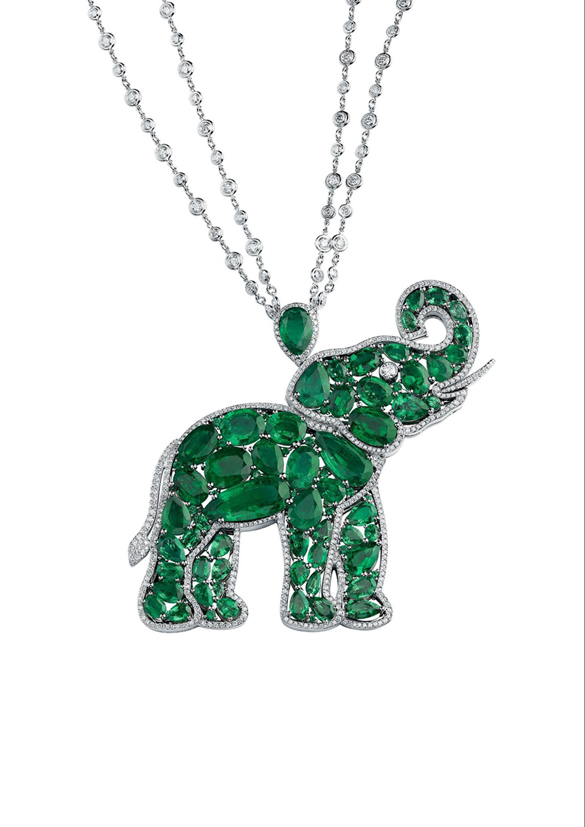 Lấy cảm hứng từ thiên nhiên mềm mại, hình khối trừu tượng và sự thanh lịch chuẩn mực của Art Deco, các thiết kế phản ánh tinh thần “joie de vivre” (niềm vui sống) trong “The Great Gatsby” của Francis Scott Fitzgerald. Điểm nhấn nằm ở mặt dây chuyền hình voi – một sự tri ân cho cái tên Insofu – với ngọc lục bảo đa dạng hình dáng được bao quanh bởi kim cương lấp lánh tạo thành ngà voi. Thiết kế tinh xảo có thể biến đổi linh hoạt thành trâm cài, đồng thời, chiếc vòi voi hướng lên biểu trưng cho thịnh vượng và may mắn.