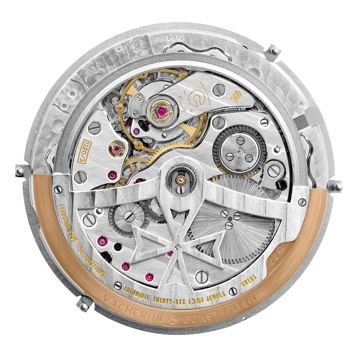 Tương xứng với chất lượng cơ học, các chi tiết bộ máy được hoàn thiện thủ công tỉ mỉ. Dù bị che khuất dưới mặt số, nhưng phiến chính vẫn được trang trí vân tròn tinh xảo, trong khi nắp lưng sapphire tự tin phô diễn trước mắt người xem các kỹ nghệ trang trí đặc trưng, như Côtes de Genève, vát cạnh thủ công, chân kính và vít hoàn thiện satin tròn, cùng bánh răng đánh bóng. Đặc biệt, rotor cũng được trang trí Côtes de Genève với phần rìa ngoài bằng vàng 22k hoàn thiện theo phong cách skeleton theo hình chữ thập Maltese – biểu tượng đặc trưng của Vacheron Constantin.