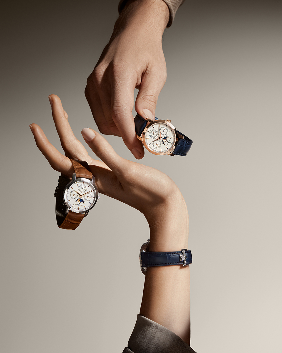 Traditionnelle Perpetual Calendar Ultra Thin ra mắt trong ba phiên bản khác nhau. Bên cạnh phiên bản vàng hồng 18K 5N được đề cập trong bài viết, thương hiệu còn công bố một bằng vàng trắng 18K, đây là những mẫu Traditionnelle không nạm đá đầu tiên được giới thiệu trong kích thước vỏ này, song song đó là một phiên bản vàng trắng 18K nạm kim cương.