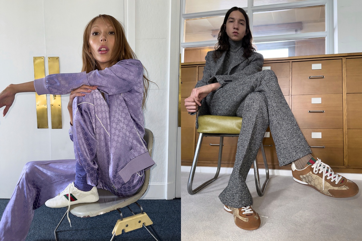 Còn với cánh mày râu, thiết kế nhấn mạnh tính hiện đại mạnh mẽ với chi tiết Web stripe trên lưỡi gà và gót, cùng đường may ngang gợi nhớ họa tiết Web. Thiết kế được hoàn thiện với đế giày mang logo maxi nổi bật. Các phiên bản nam sẽ bao gồm da trơn, da wash và canvas GG.