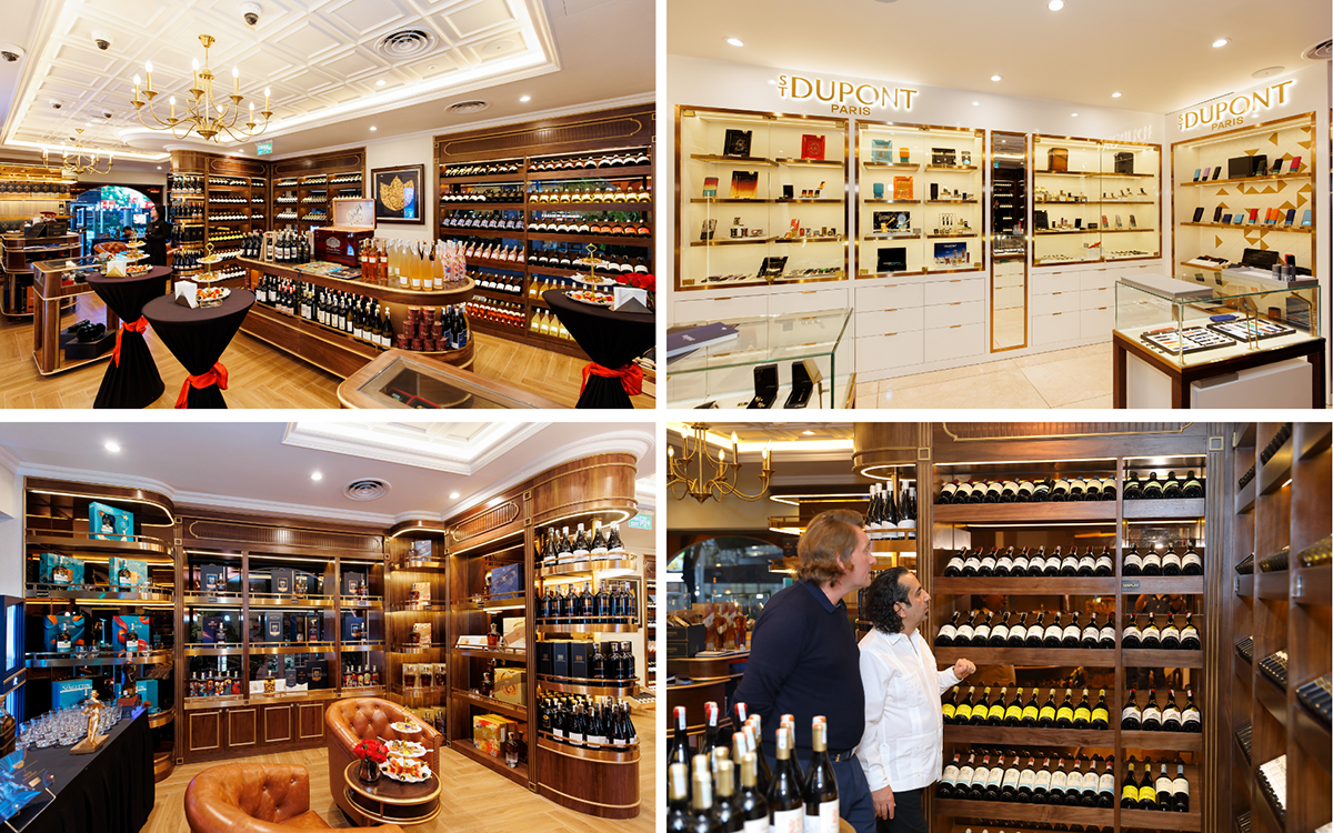 Không gian tầng 1 dẫn dắt Quý thượng khách đến chiêm ngưỡng và trải nghiệm những tặng phẩm tinh hoa châu Âu với rượu vang cao cấp, whisky thượng hạng và phụ kiện thiết kế độc đáo từ thương hiệu S.T. Dupont