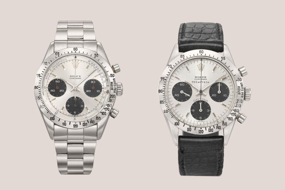 Chiếc đầu tiên, Rolex Daytona ref. 6239, được các nhà sưu tầm gọi là “The Doctor”, có giá ước tính lên tới 760.000 USD. Theo Christie’s, hiện chỉ còn chưa đến năm chiếc tương tự trên thế giới. Điểm đặc biệt của mẫu này là dòng chữ “Cosmograph” trên mặt số, trong khi tên “Daytona” chỉ được thêm sau khi Rolex bắt đầu tài trợ cho giải đua NASCAR. Đồng hồ từng thuộc sở hữu của một bác sĩ người Florence và được giới y khoa yêu thích nhờ thang đo nhịp tim tiện dụng trên mặt số.