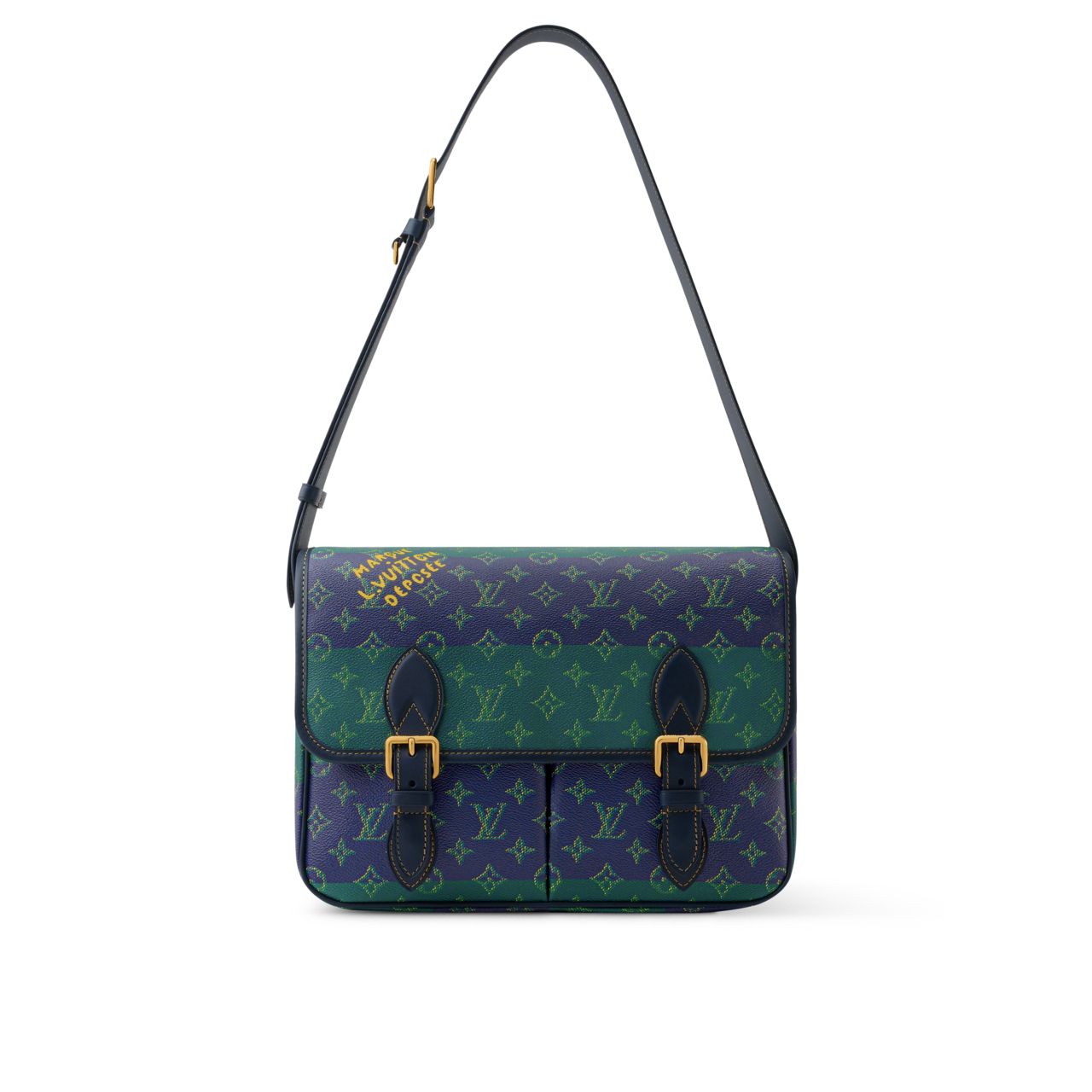 Họa tiết Monogram Héritage trong một hình hài mới mẻ được Pharrell Williams khởi tạo, mang đến những chiếc túi canvas xanh lá nổi bật với sọc xanh dương hoặc đỏ preppy. Lớp lót màu nghệ, phụ kiện kim loại vàng, viền navy, dây đeo sọc và thẻ tên cá nhân hóa bằng kỹ thuật dập nóng – tất cả làm nên tinh thần đặc trưng.