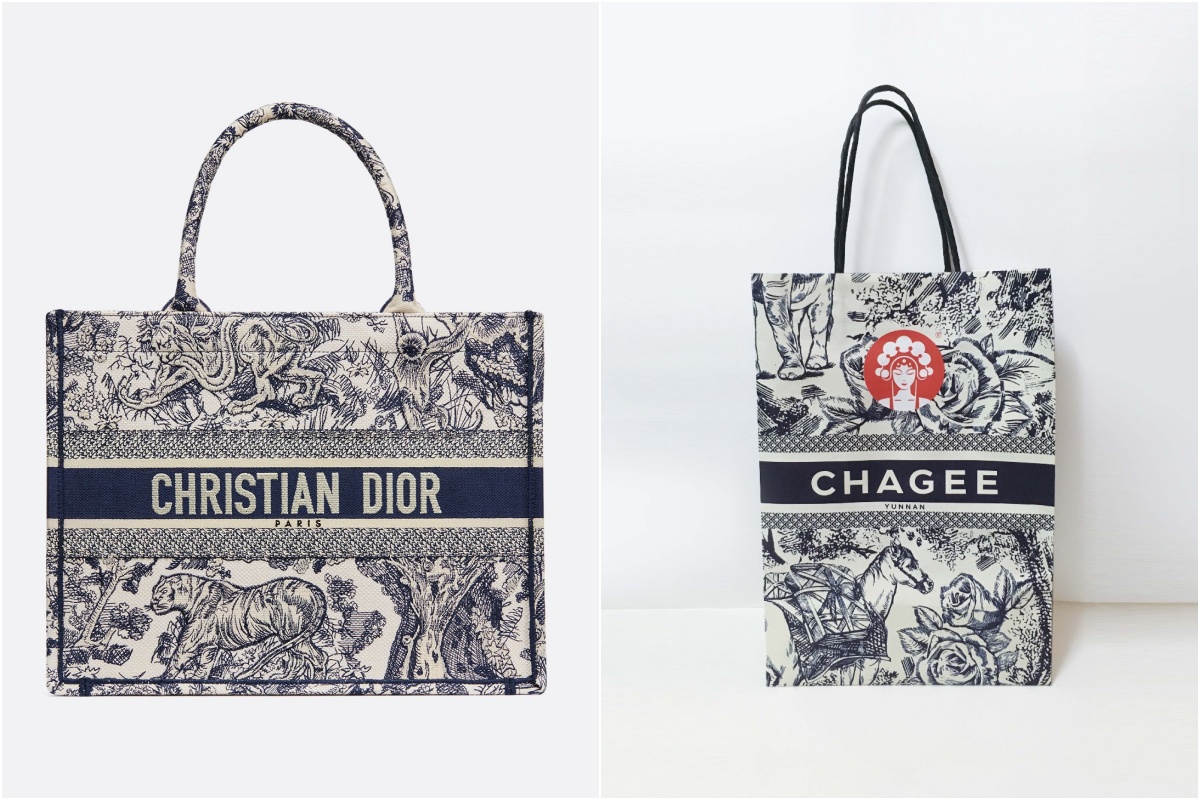 Nếu là một người mộ điệu, hẳn ai cũng sẽ biết tranh cãi về vấn đề đạo nhái bủa vây Chagee khi mẫu túi giấy màu xanh trắng của của thương hiệu trà sữa này có thiết kế quá giống với dòng túi tote vải Toile de Jouy mang phong cách đồng quê của Dior. Chính vì sự giống nhau này mà Chagee phải đối mặt với luồng ý kiến cho rằng chuỗi trà sữa đã vi phạm bản quyền thiết kế. Tuy nhiên, một luồng ý kiến khác lại khẳng định cả 2 thương hiệu đều lấy cảm hứng từ những nét văn hóa chung. Họa tiết trên túi giấy của Chagee được xem là một sự tôn vinh các họa tiết gốm sứ truyền thống của Trung Quốc, trong khi hoạ tiết của chiếc túi tote Toile de Jouy của Dior là một loại vải Pháp thế kỷ 18 nổi tiếng với các cảnh đồng quê, hoa lá và các nhân vật thần thoại được in đơn sắc trên nền vải sáng màu. Nhà thiết kế Christian Dior đã đưa mẫu họa tiết này vào BST từ năm 1947 và đưa thiết kế ấy trở thành họa tiết đặc trưng của thương hiệu.