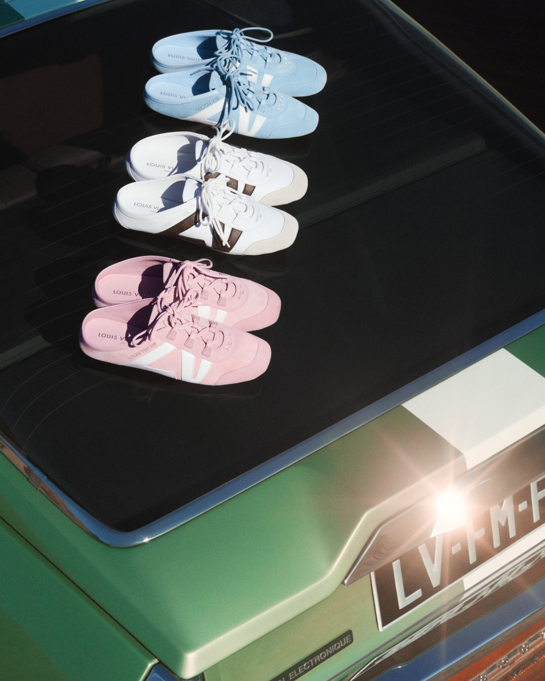 Một mảnh ghép không thể thiếu của BST là dòng giày thể thao LV Sneakerina với thiết kế năng động cùng kiểu dáng thanh lịch. Nhằm kỷ niệm tròn 1 năm ra mắt, dòng sản phẩm này được phát triển thêm các phiên bản mule và boot. Mỗi đôi giày là sự kết hợp giữa tinh thần thể thao và thời trang đô thị hiện đại, đề cao tính ứng dụng mà vẫn giữ được vẻ đẹp thanh lịch. Được hoàn thiện từ các chất liệu như da, da lộn hoặc vải jersey cao cấp với các phối màu đơn sắc hoặc nhị sắc, dòng giày này được thiết kế để sử dụng hàng ngày và nâng tầm vẻ ngoài đẳng cấp cho những ai sở hữu bộ sưu tập Flight Mode lần này.