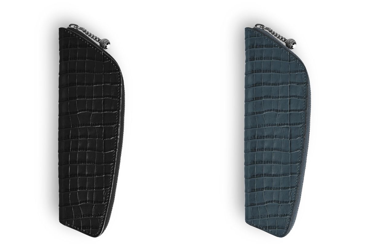 Mẫu Atelier Pen Pouch gợi nhớ đến một thiết kế ra mắt giữa thế kỷ trước mang các đường nét bất đối xứng và điểm nhấn là đầu khóa kéo hình cầu. Thiết kế mang chất liệu da bê Meisterstück màu đen, cùng các phiên bản da bê dập vân cá sấu trong sắc đen và xanh nhung.
