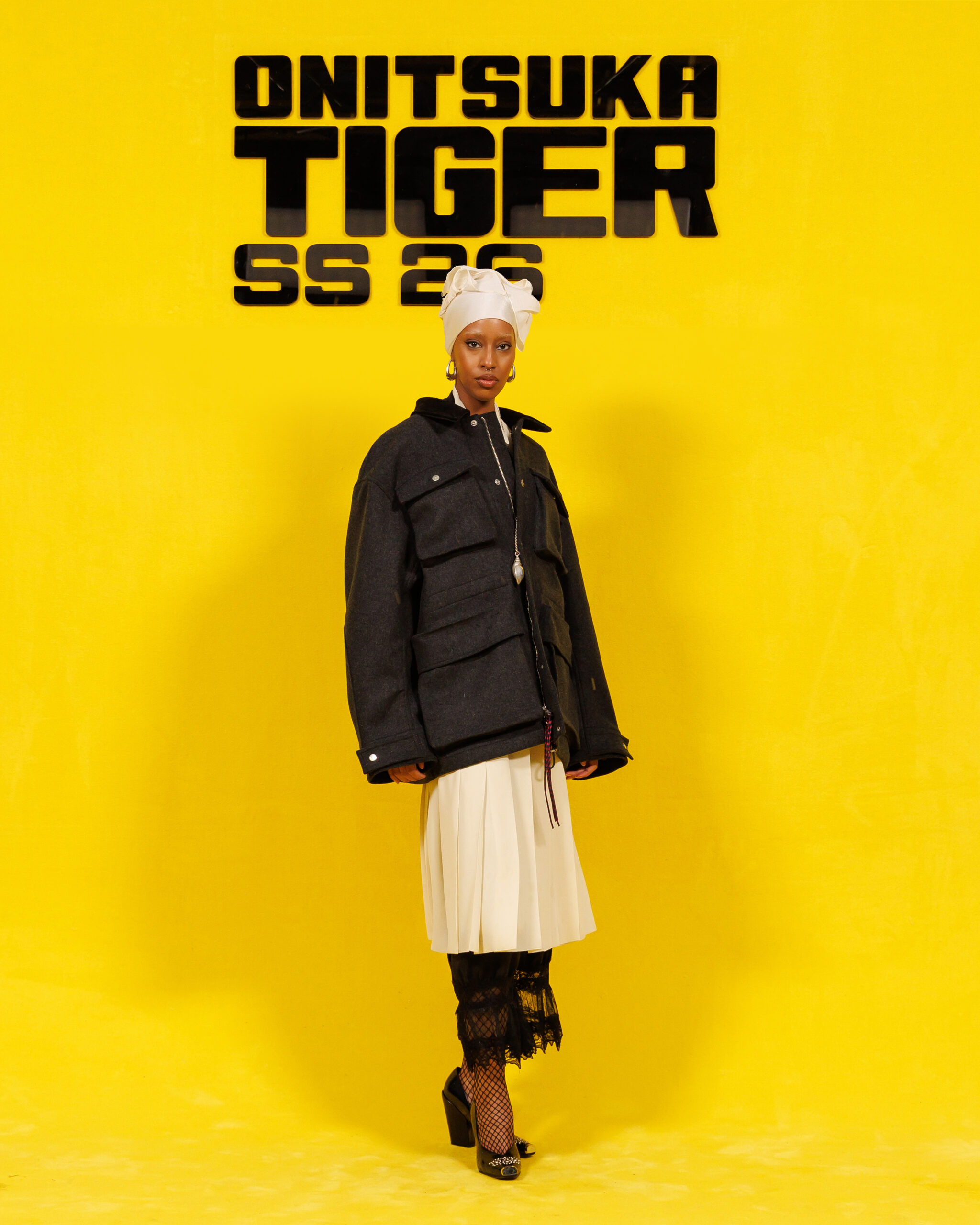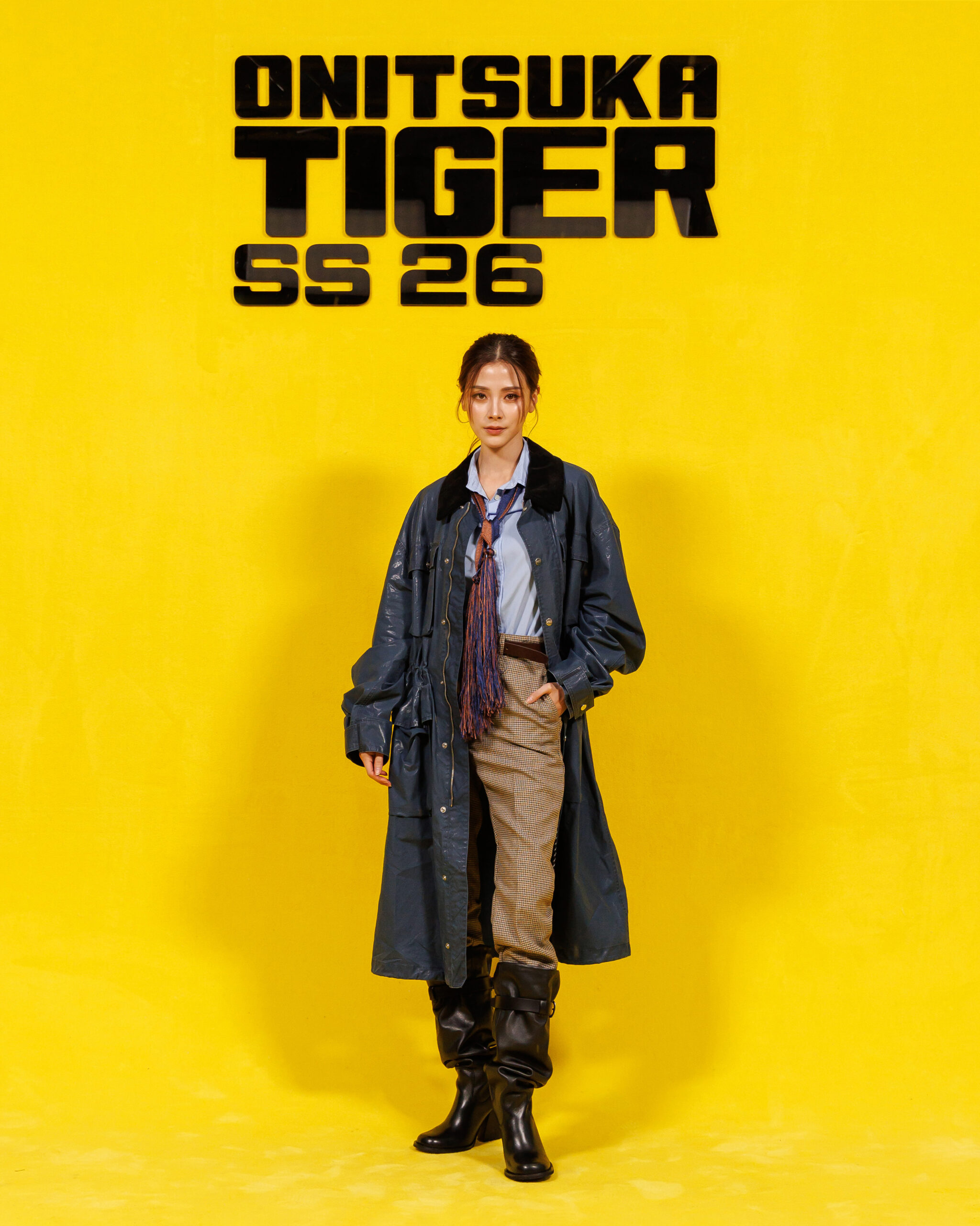 Di sản thể thao, một mã gen cốt lõi của Onitsuka Tiger, tiếp tục được tái định nghĩa qua bộ Tracksuit đặc trưng của thương hiệu. Thiết kế quần thể thao phom dáng ôm lấy cảm hứng từ dự án Paw Project ra mắt năm 1974 được nâng tầm khi phối cùng áo mang hơi hướng nội y (lingerie-like), kết hợp cùng áo khoác nam tính và giày cao gót. Cùng tinh thần đó, áo khoác thể thao được phối lớp bên ngoài áo khoác dáng dài và áo khoác dã chiến có phom ôm, biến một bộ trang phục quen thuộc thành một tuyên ngôn về sự tinh tế và sang trọng.