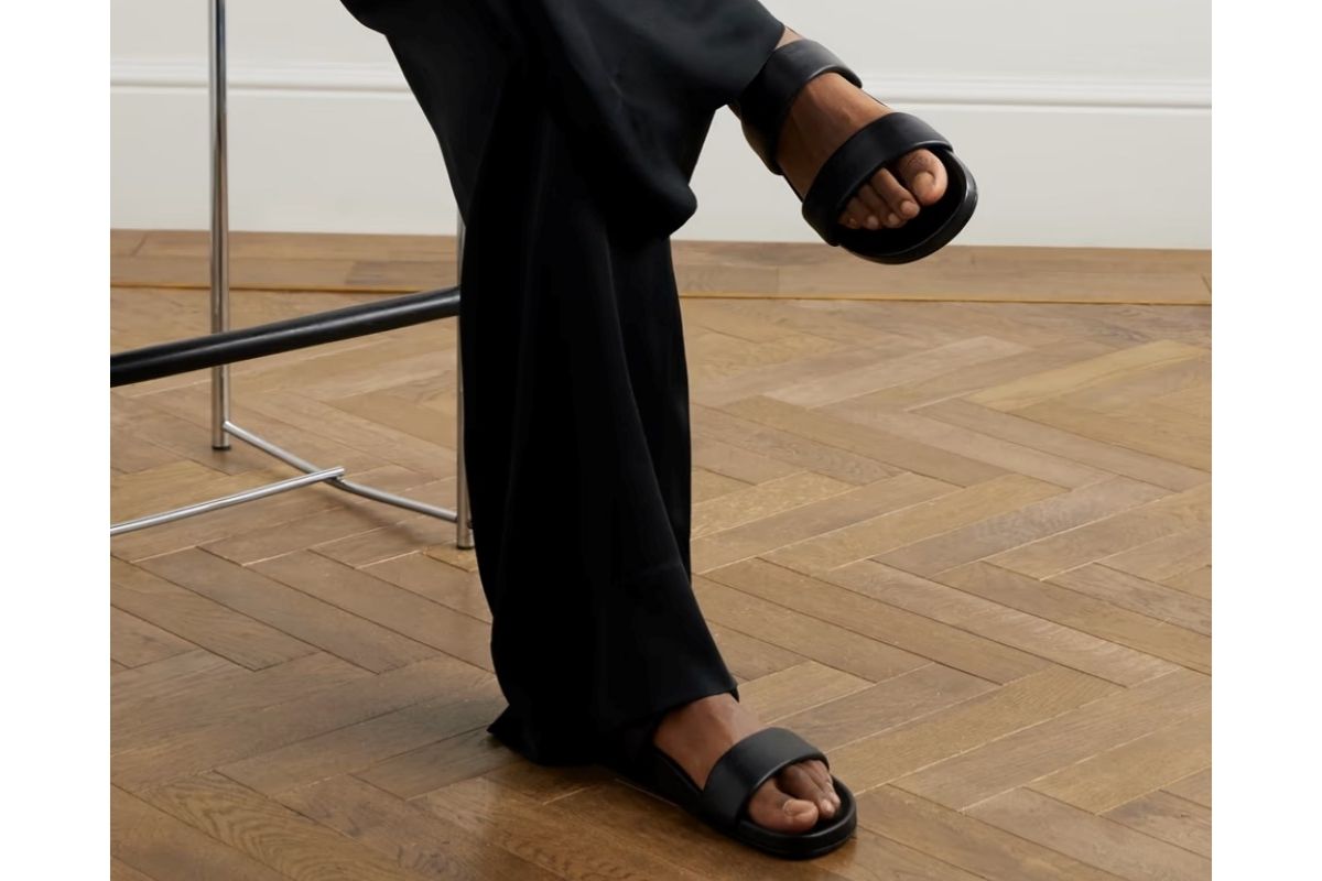 Tiêu biểu nhất là sandal quai da hai dây (double-strap) – kiểu dáng phổ biến nhưng chưa bao giờ lỗi thời. Với phần quai da bản vừa, thiết kế này giúp định hình bàn chân chắc chắn, thoáng nhẹ mà vẫn giữ được sự gọn gàng. Một đôi sandal hai dây là lựa chọn hoàn hảo và dễ dàng kết hợp với những món đồ “đóng đinh” mùa hè như quần short linen, áo sơ mi trắng cài hờ khuy hay một chiếc mũ cói Panama. Tông màu nên chọn là be, trắng, xanh lơ hoặc xanh olive, tạo cảm giác mát mắt và dễ hòa vào thiên nhiên.
