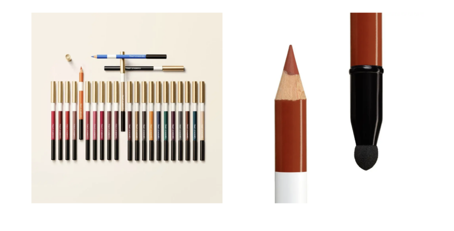 Từ bút môi, bút kẻ mắt đến bút kẻ mắt nước, mỗi sản phẩm đều được chế tác từ gỗ khai thác bền vững, kết hợp cùng nắp bút kim loại mạ vàng khắc biểu tượng chữ “H” tinh tế. Thiết kế thân bút là sáng tạo của Pierre Hardy, nhà thiết kế bao bì mỹ phẩm Hermès, lấy cảm hứng từ những thanh rào màu sắc trong môn đua ngựa vượt chướng ngại vật, với kiểu dáng tròn cùng lớp sơn ba màu độc đáo, tạo nên một tác phẩm mỹ phẩm nổi bật.