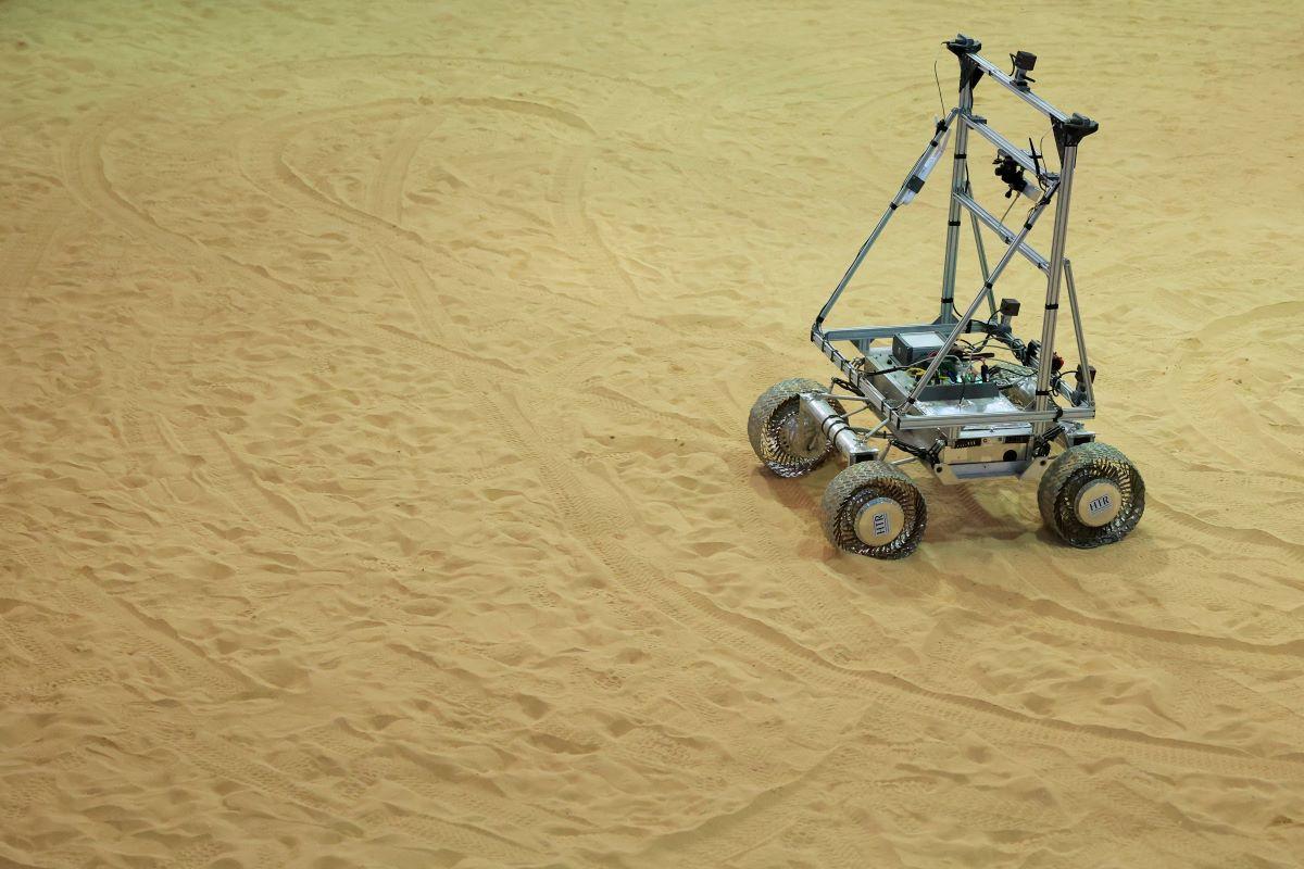 Một xe tự hành trên mặt trăng của công ty công nghệ đa quốc gia Tây Ban Nha GMV di chuyển trên cát trong buổi giới thiệu dự án LUPIN tại Lajares, trên đảo Fuerteventura, Tây Ban Nha vào ngày 8/5/2025. Ảnh: REUTERS/Borja Suarez