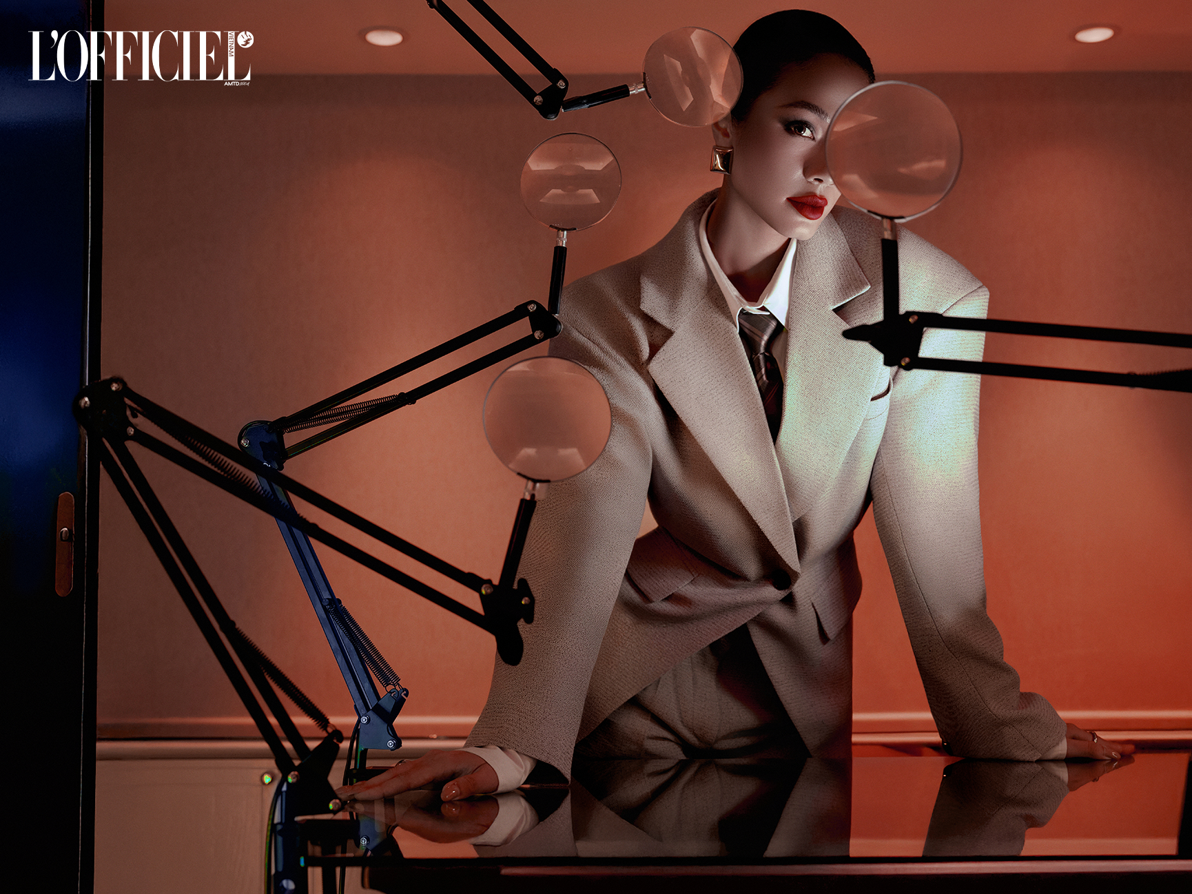 - Phong cách Quyền lực và Xếp nếp Mềm mại: Các kiểu dáng may đo màu xám và đen phục vụ cho cả công việc và vui chơi hàng ngày, với một chiếc áo blazer quá khổ, nhưng được may đo chính xác mang đến cảm giác “mượn từ tủ đồ nam giới”. Phần vai cứng cáp của áo blazer tạo ra một hình bóng quyền lực, tương phản với sự mềm mại sang trọng của kiểu dáng xếp nếp được thắt ở eo tôn lên đường cong đồng hồ cát. Sự kết hợp giữa phong cách quyền lực và xếp nếp mềm mại này phản ánh bản chất đa diện của nữ tính hiện đại.