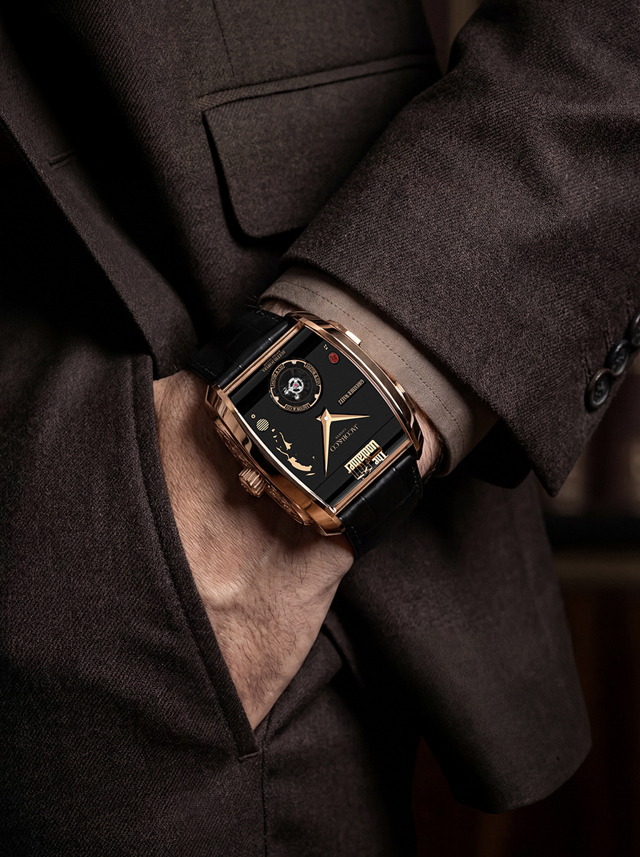 “Tôi khao khát mang đến cho The Godfather II một khía cạnh hoàn toàn mới về khái niệm đồng hồ âm nhạc”, Jacob Arabo bổ sung. “Chúng tôi đã thiết kế một bộ vỏ tinh tế mang âm hưởng thập niên 1930 và dành trọn ba năm để phát triển một bộ máy cơ có khả năng trình diễn hai giai điệu, song vẫn đảm bảo tính ứng dụng hoàn hảo trên cổ tay”.