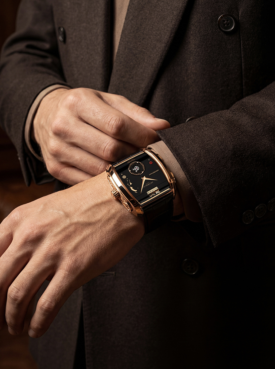 Ngự trị trong bộ vỏ chữ nhật với những đường cong công thái học lấy cảm hứng từ phong cách Art Deco, The Godfather II phô diễn khả năng khuếch đại cường độ âm thanh được tối ưu hóa vượt bậc. Cấu trúc bộ máy tinh gọn tích hợp flying tourbillon cùng bộ đôi chỉ báo dự trữ năng lượng, đánh dấu sự giao thoa hoàn mỹ giữa cơ chế âm học phức tạp và nghệ thuật Haute Horlogerie đỉnh cao.