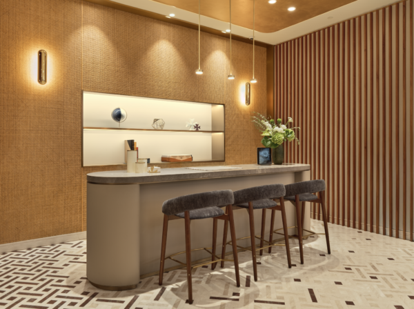Cửa hàng làm nổi bật hành trình trải nghiệm của khách hàng, tôn vinh mỹ thuật Việt Nam với sự pha trộn của kiến trúc Pháp, chào đón khách ghé thăm với những bức tường mây tre đan được chế tác thủ công địa phương và quầy bar được thiết kế với tông màu đất, lấy cảm hứng từ thiên nhiên. Bức tường phía sau thành hình từ kỹ thuật khảm rơm, trong khi các yếu tố cong uốn lượn gợi lên hình ảnh một sân khấu opera. Cửa hàng cũng có hai phòng tiếp khách với nội thất được thiết kế riêng và chế tác tại Hà Nội, bao gồm bàn cà phê, sofa và tủ sách.