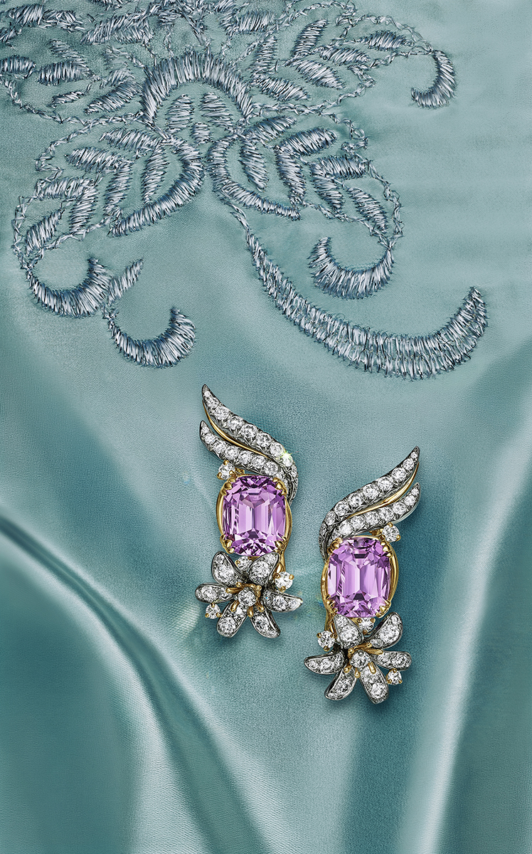 Jasmine tái hiện thiết kế Schlumberger 1961 – 1962 với cấu trúc đan bạch kim tinh xảo và viên kim cương cushion loại D hơn 18 carat. Một số thiết kế khác sử dụng kunzite, một trong những “di sản đá quý” của Tiffany làm nổi bật vẻ đẹp hoa nhài.