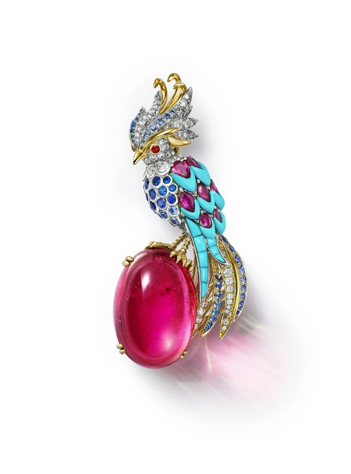 Câu chuyện Parrot lấy cảm hứng từ những chiếc trâm vẹt giàu trí tưởng tượng của Schlumberger từ thập niên 1960. Sapphire xanh và tím không xử lý tạo điểm nhấn trên nền họa tiết lông vũ, trong khi kim cương kết hợp cùng kỹ thuật tráng men paillonné tinh xảo trong bảng màu hội họa gồm xanh đậm, xanh vịt và Tiffany Blue®.