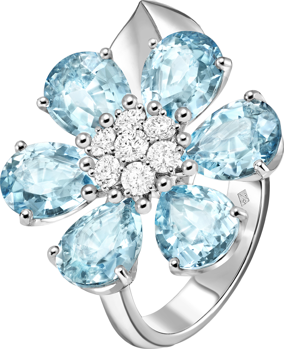 Các loại đá quý được Bộ phận Đá quý lựa chọn theo tiêu chí và gu thẩm mỹ của Maison. Các chuyên gia đá quý luôn nỗ lực để tìm kiếm những viên đá có cường độ và sự đồng nhất trong màu sắc, độ tinh khiết về vật liệu. Họ cũng chú ý đến chất lượng của đường cắt, yếu tố quyết định độ sáng và sự thanh lịch cho viên đá. Maison ưa chuộng những viên đá có giác cắt hình quả lê cân đối. Những người thợ rất cẩn thận khi kết hợp những viên đá trang trí cánh hoa để đảm bảo bông hoa có màu sắc đồng nhất hoàn hảo. Những viên đá cắt hình quả lê được kết hợp lại để tạo thành một đài hoa quý giá. Tựa như đang được nâng lên bởi làn gió nhẹ, mỗi cánh hoa vươn cao, truyền tải cảm giác nhẹ nhàng và tràn đầy sức sống.