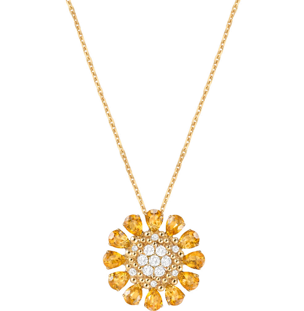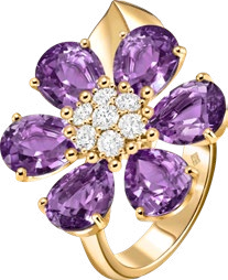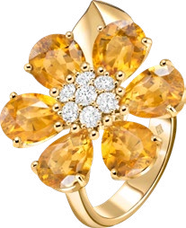 Đá Citrine mang ánh sáng vàng cam ngập tràn niềm vui đến cho tạo phẩm, đá Amethyst mê hoặc ánh nhìn bằng những tông màu tím huyền bí, trong khi sắc hồng sâu thẳm của đá Rhodolite tạo nên sự tương phản đầy thanh lịch với kim cương. Cuối cùng, đá Aquamarine kiến tạo vẻ đẹp bằng sự phản chiếu rạng ngời tựa pha lê, trong khi sắc xanh lục mang hơi thở mùa xuân của đá Peridot lại lấp lánh, đầy sức sống. Mỗi viên đá quý đều giao thoa cùng ánh hào quang của vàng hồng, vàng kim hoặc vàng trắng, nâng tầm sắc độ của chính mình lên mức cao nhất.