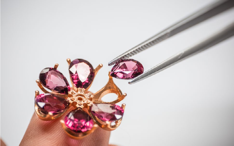 Những viên đá quý được Bộ phận Đá quý của Van Cleef & Arpels tuyển chọn dựa trên các tiêu chí về sự xuất chúng và gu thẩm mỹ khắt khe của Maison. Các chuyên gia ngọc học am tường luôn hướng đến cường độ và sự đồng nhất về màu sắc, cũng như độ tinh khiết của chất liệu. Họ đồng thời dành sự chú ý đặc biệt đến chất lượng giác cắt, yếu tố quyết định độ phản chiếu ánh sáng và vẻ thanh tao cho hình dáng viên đá. Chính vì thế, họ ưu ái những viên đá cắt hình giọt nước (pear-cut) mang tỷ lệ cân đối. Một sự cẩn trọng tột bậc cũng được áp dụng trong việc ghép các viên đá điểm xuyết trên những cánh hoa, nhằm đảm bảo đóa hoa đạt được sự đồng nhất tuyệt đối về sắc độ.