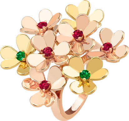 Năm tuyệt phẩm cùng bừng nở trong bộ sưu tập mới này: Một chiếc nhẫn, một chiếc nhẫn Between the Finger, một đôi hoa tai, một mặt dây chuyền và một chiếc trâm cài mặt dây chuyền có thể biến hóa với hai phương thức diện đeo khác biệt, khẳng định nhãn quan của Maison đối với những tạo tác đa công năng. Để mang lại sinh khí cho những tuyệt tác này, các nghệ nhân đã hợp nhất toàn bộ kỹ nghệ savoir-faire. Ứng dụng kỹ thuật đúc mẫu chảy cổ xưa, các thành phần cấu tạo nên họa tiết trước tiên được điêu khắc trên sáp. Khi nung nóng, kim loại quý nóng chảy sẽ lấp đầy và mang lấy hình dáng của khoảng trống do sáp tan chảy để lại. Các chi tiết bằng vàng sau đó được thợ kim hoàn chế tác thủ công, trước khi tiến hành nạm đá quý và đánh bóng.