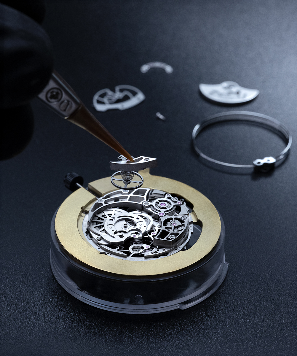Nằm trong vỏ vàng trắng hoặc vàng hồng đường kính 38mm, bộ máy này kích hoạt âm thanh của cơ chế Minute Repeater. Mang linh hồn tuấn mã rực rỡ, chiếc đồng hồ vạch ra ranh giới chuyển giao giữa hai thế giới, nơi nội tại và ngoại cảnh hòa quyện. Trò chơi trốn tìm này dành chỗ cho những tâm hồn giàu trí tưởng tượng, trong khi mặt sau bằng kính sapphire cho phép họ chiêm ngưỡng các chi tiết của bộ chuyển động, bao gồm các búa gõ và một rotor siêu nhỏ được trang trí hoa văn Duc attelé.