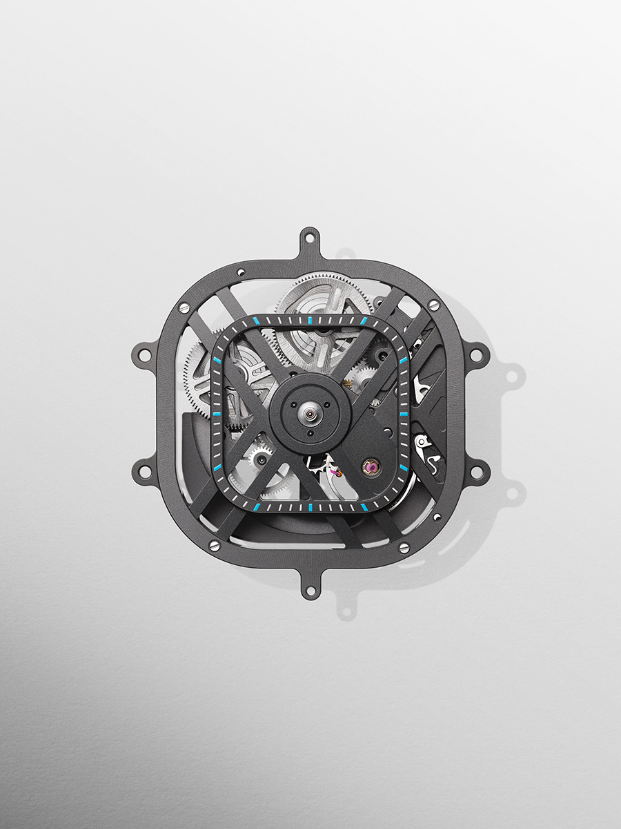 Mẫu đồng hồ Hermès H08 tiếp tục kể câu chuyện về hình dáng của mình, vừa tròn, vừa vuông đồng thời chứa đựng một bộ máy hé lộ những điều vô hình. Được bao bọc trong bộ vỏ titanium chải satin đường kính 39 mm, các chi tiết cơ khí phức tạp hiện lên tinh giản và duy mỹ.