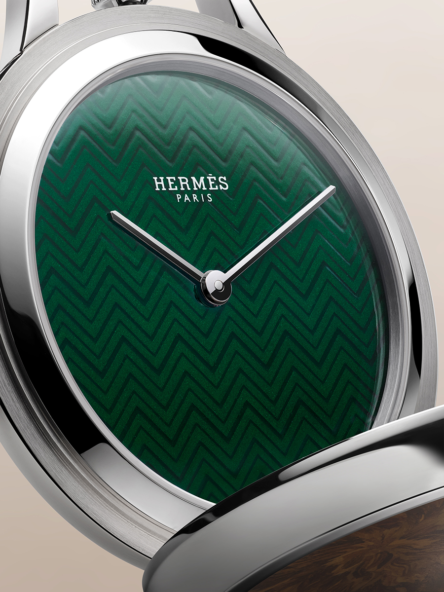 Thông qua những kẽ hở tinh vi này, mỗi bánh răng trở thành một nhân vật trong một vở kịch thu nhỏ (mise-en-scène), công năng đối thoại cùng thẩm mỹ. Nghệ thuật chế tác đồng hồ lộ cơ trở thành một ngôn ngữ riêng biệt, định hình mẫu đồng hồ Hermès H08, tìm thấy biểu cảm mới trong mẫu Arceau Samarcande và là tâm điểm trong bộ sưu tập Slim d’Hermès. Trong khoảng lặng kịch tính này, Hermès biến khoảnh khắc thành một màn trình diễn sống động và hé lộ những bí ẩn của mình.