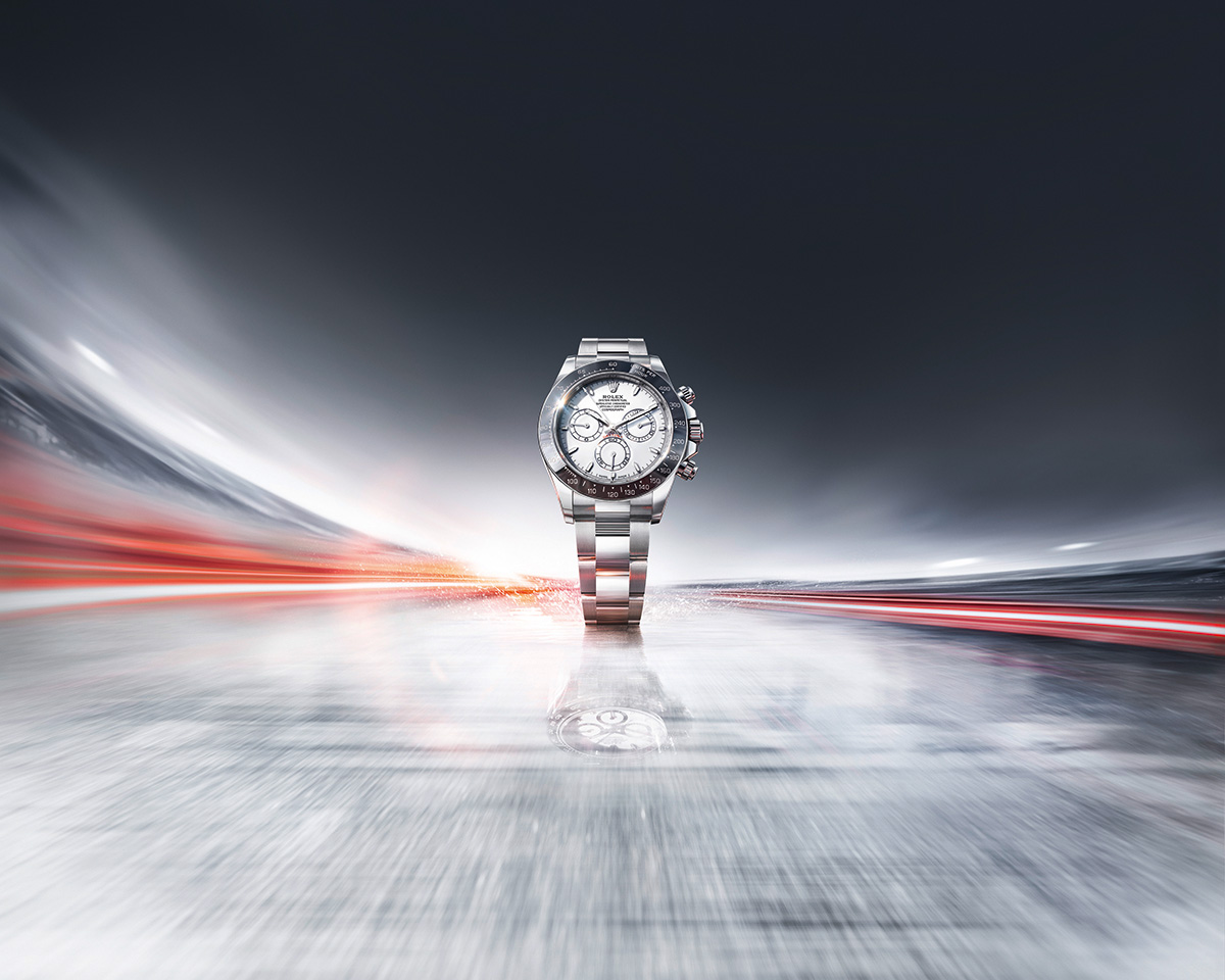 Trên thang đo tachymetric của vành đồng hồ mới này, các chữ số được bố trí theo chiều ngang, gợi nhớ đến thiết kế của mẫu Cosmograph Daytona đầu tiên. Những chữ số ‘treo lơ lửng’ này được khắc theo phông chữ vô cùng hiện đại. Bộ máy đồng hồ lộ ra qua nắp lưng bằng kính sapphire, được cố định bằng một vòng bạch kim.