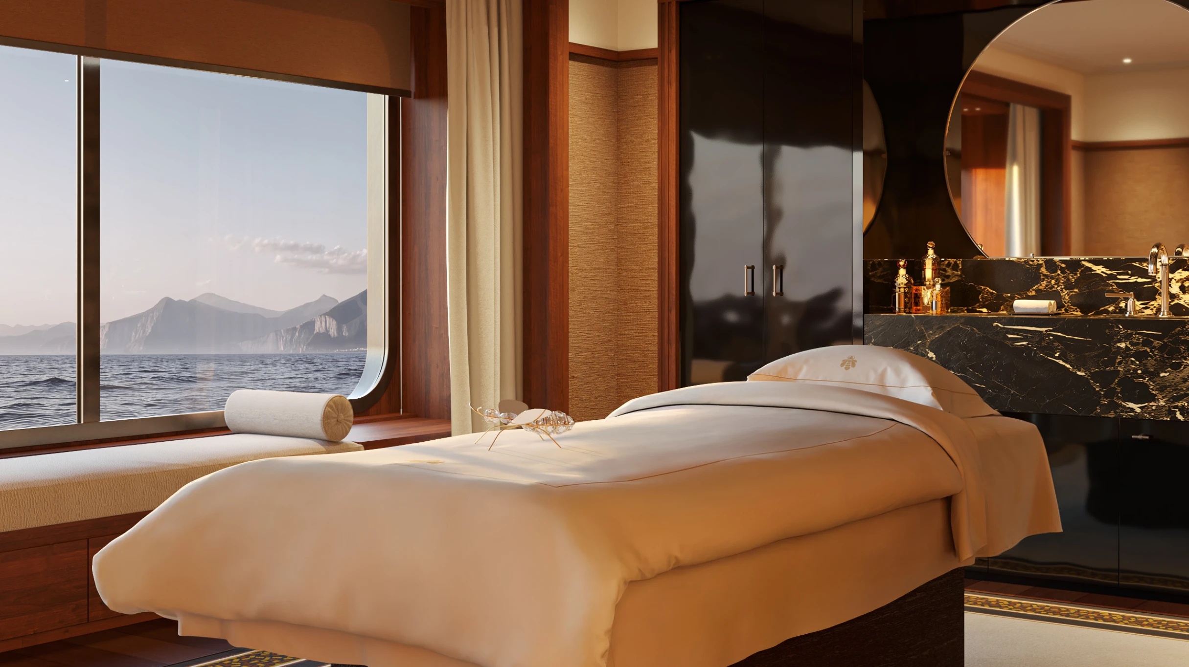Trải nghiệm wellness trên du thuyền còn được mở rộng thông qua các chương trình retreat cá nhân hóa cùng chuỗi hoạt động văn hóa độc quyền: thư viện sách quý hiếm, rạp chiếu phim, những buổi hòa nhạc riêng tư và hành trình ẩm thực được kiến bảo bởi bàn tay tài hoa và khẩu vị tinh tế của đầu bếp sở hữu nhiều sao Michelin – Yannick Alléno.